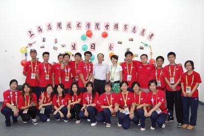 康年发表热情洋溢的讲话,他称赞我校志愿者在服务世游赛期间所展现出来的不畏辛苦、乐于奉献的精神;感谢志愿者为上海的重大赛事做出的贡献,展示了我校大学生的风采,为学校争得了荣誉。他为志愿者们佩带精心设计的徽章。