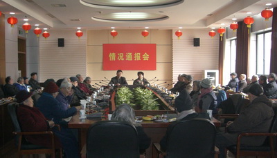 卢冠忠校长向老领导、老干部们致以亲切问候,向与会老同志通报了学校近年来在教学、科研、育人、研究生教育和师生志愿者奉献世博等方面主要工作,以及学校成功举办新校区落成和合校10周年庆典活动情况,并详尽介绍了学校“十二五”发展宏图。卢校长深情地表示:学校的发展凝聚着老干部、老领导们打下的坚实基础,感谢老同志为学校发展作出的贡献,希望老同志们一如既往地关心、支持学校的建设和发展,为学校新一轮发展多建言献策。