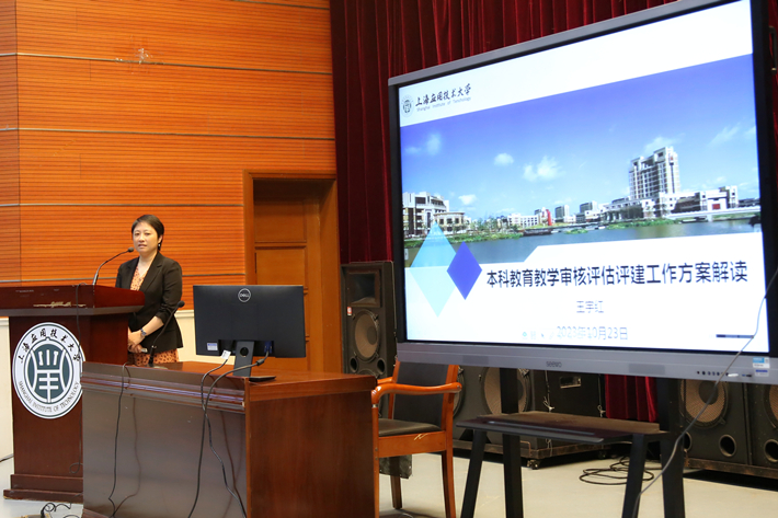 教务处处长、学校本科教育教学审核评估评建工作领导小组办公室主任王宇红对学校审核评估工作方案作了细致解读,从审核评估工作依据、组织机构、任务分解、时间安排、评建重点及工作进展等方面作了安排部署。