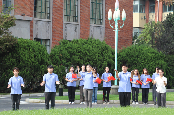 仪式最后,全体师生挥舞手中鲜艳的五星红旗,深情合唱《歌唱祖国》,嘹亮的歌声在整个校园久久回荡,表达了全体上应师生在奋进新征程中坚守初心、挺膺担当、团结奋斗,为中国式现代化建设的伟大事业贡献上应力量的坚定信心与决心。