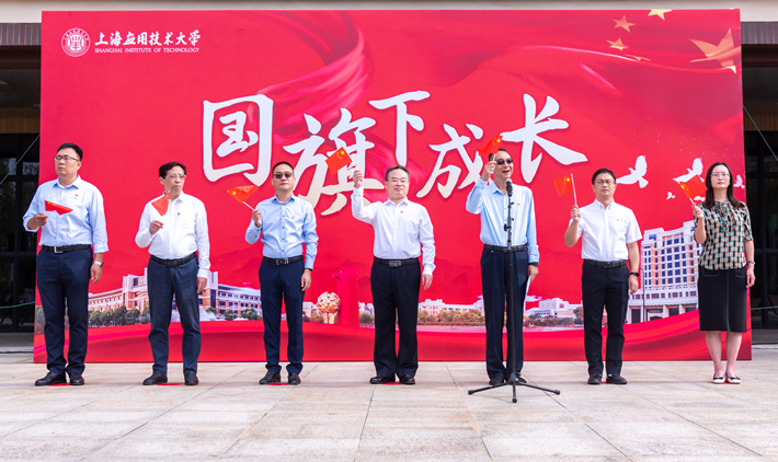 10月1日上午,学校于奉贤、徐汇两校区同步举行“学习二十大、永远跟党走、奋进新征程”庆祝中华人民共和国成立74周年升国旗仪式。校党委书记郭庆松,校党委副书记、副校长王瑛分别出席两校区升旗仪式并讲话。党委学生工作部、人民武装部、校团委、化工学院、艺术学院负责人和400余名师生代表参加升旗仪式。