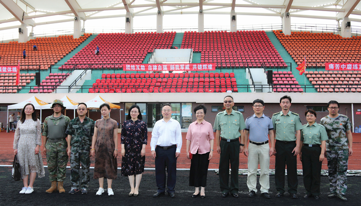 9月7日,校党委书记郭庆松,校长柯勤飞,校党委副书记、副校长王瑛来到军训现场,看望慰问正在紧张训练的承训教官、参训学生和全体工作人员。