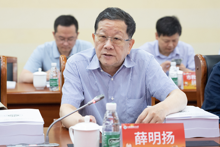 薛明扬代表专家组反馈了专家意见和建议,充分肯定了学校的建设成效,他表示上海应用技术大学在第一期“高地大”建设取得显著成效的基础上,坚持“应用导向、技术创新”的特色定位,秉承“依产业而兴、托科技而强”的办学理念,依托高水平优势学科,聚焦特色方向领域,牢牢把握发展机遇,获取资源优势,在人才培养、科学研究、创新团队建设、国际交流合作等内涵建设方面取得了明显成效,有力带动了学校整体发展,取得了一系列成绩。并针对学校二期建设实施情况和下一步优化情况从内涵建设、产教融合、科技创新、聚焦核心、能力建设、优化布局等6个方面提出建议。