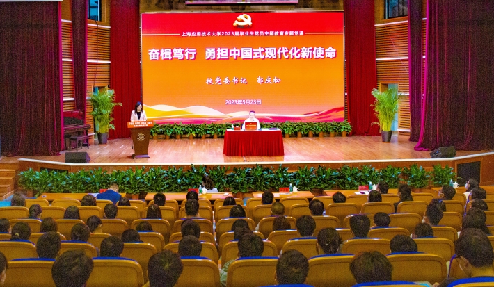 5月23日,上海应用技术大学750名毕业生党员带着对学校的依依不舍和对未来的无限憧憬,胸前佩戴着鲜艳的党徽,共同聆听校党委书记郭庆松师长为他们讲的最后一堂党课。