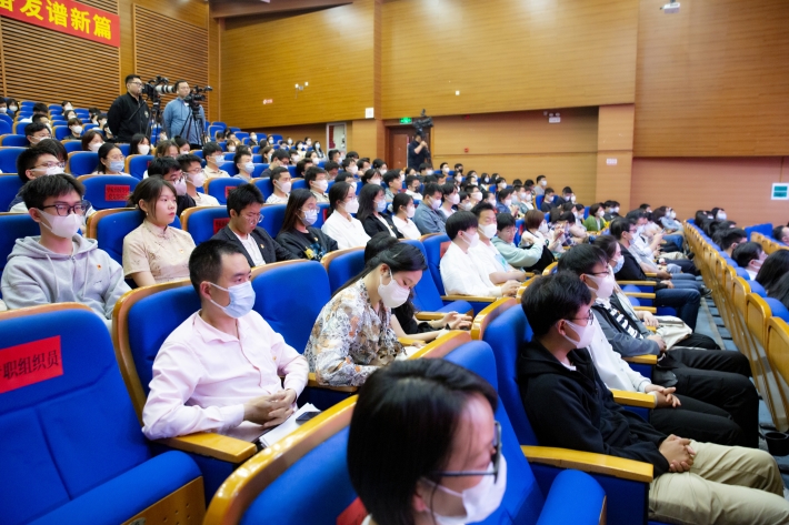 郭庆松从理论、历史、世界和实践四个维度,全面系统地讲述了中国式现代化的丰富内涵,引导同学们深刻把握正确处理中国式现代化若干重大关系,进而读懂中国式现代化的中国意蕴、世界意义以及壮阔前景。他指出,在以中国式现代化全面推进中华民族伟大复兴的新征程上,党的科学理论就是青春理想的指航灯,要让理论之光、理想之火照亮新征程上青春奋进的脚步。