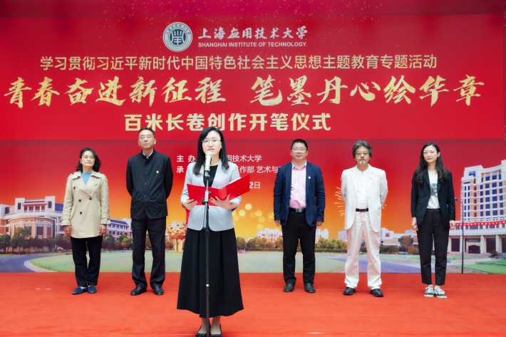 5月12日,上海应用技术大学“青春奋进新征程 笔墨丹心绘华章”百米长卷创作开笔仪式举行。校党委副书记、副校长王瑛出席仪式,并与党委学生工作部、艺术与设计学院负责同志共同为百米长卷创作开笔。