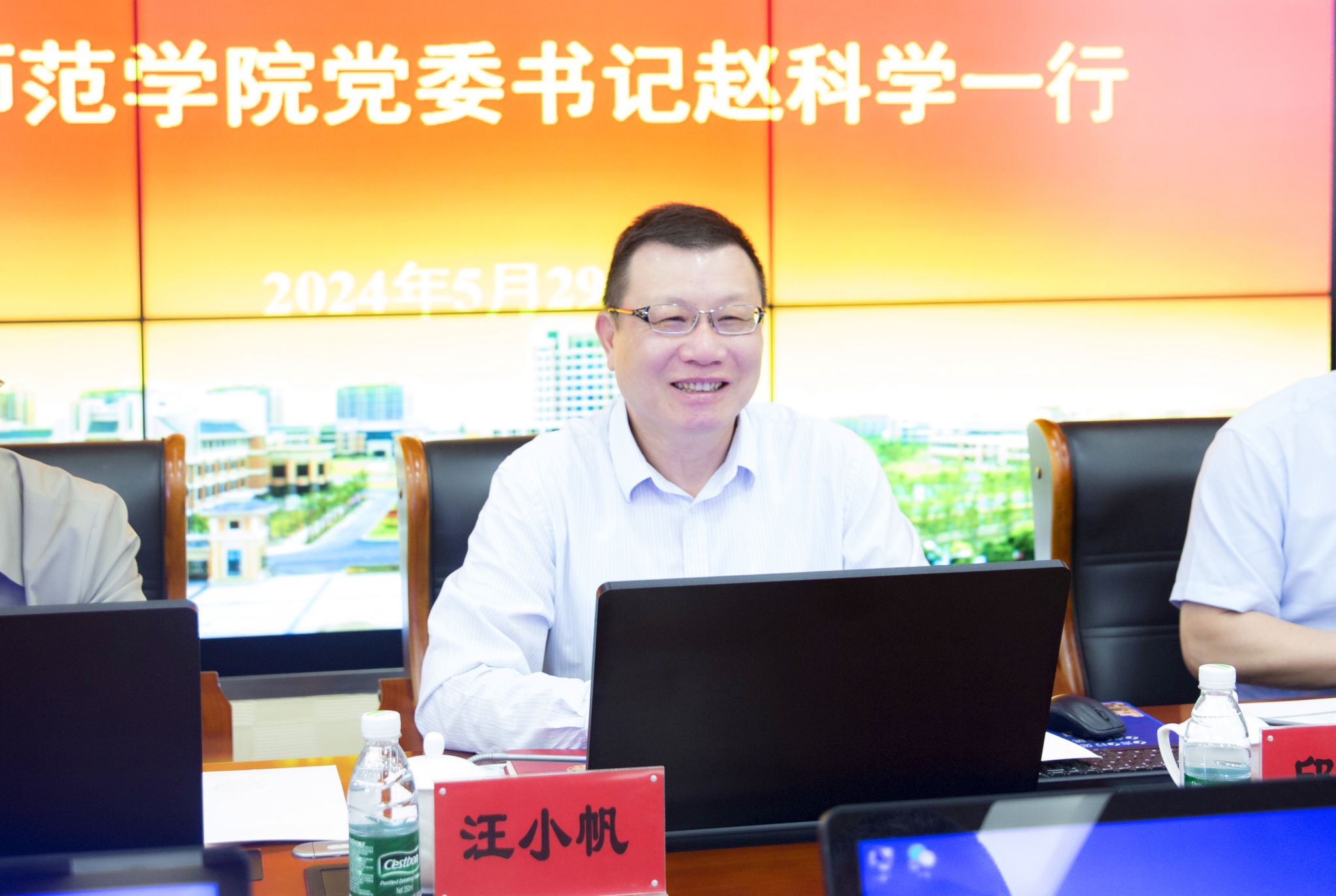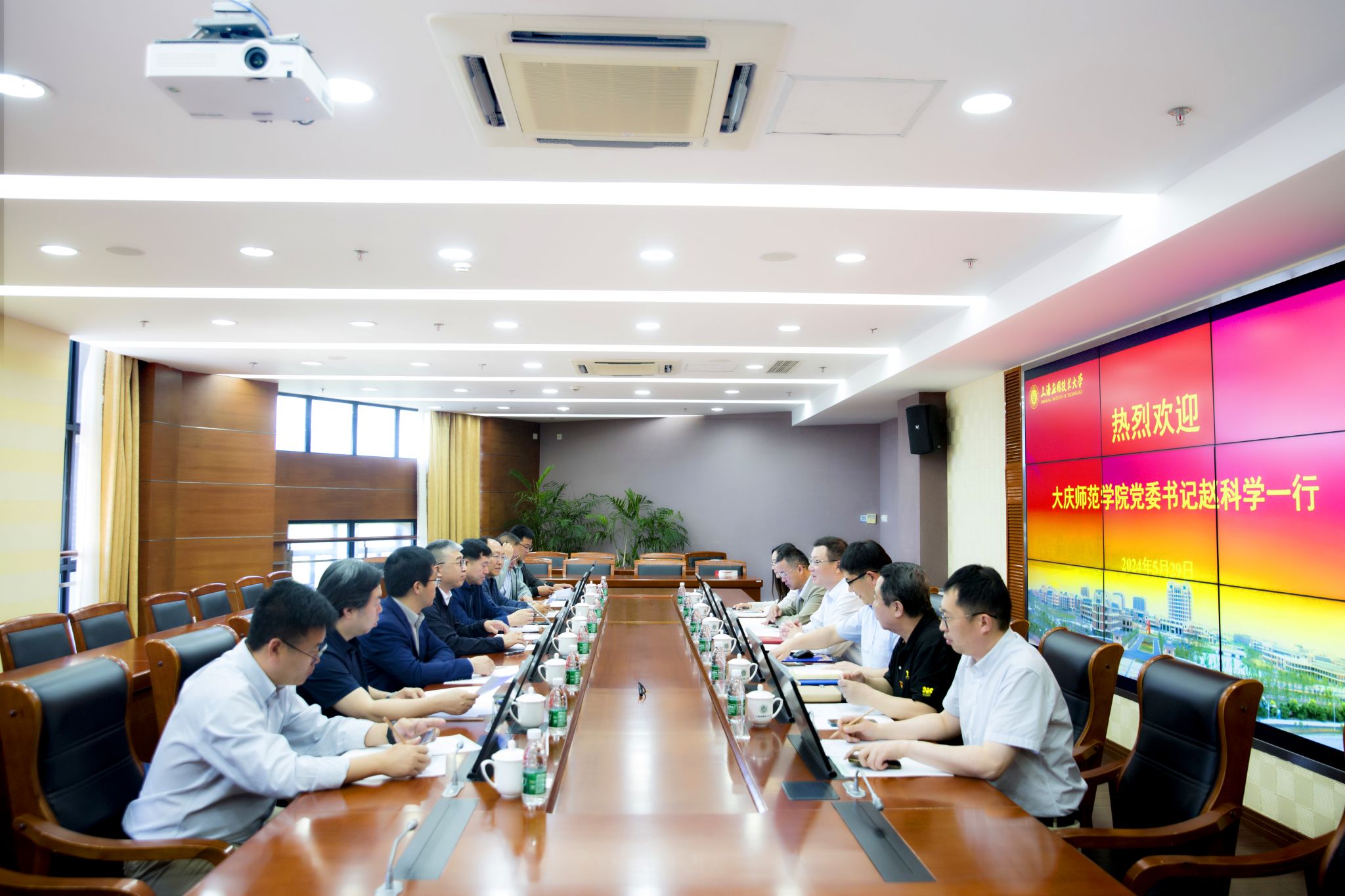 5月29日,大庆师范学院党委书记赵科学一行来访我校。校长汪小帆热情接待了来宾,双方进行座谈交流。