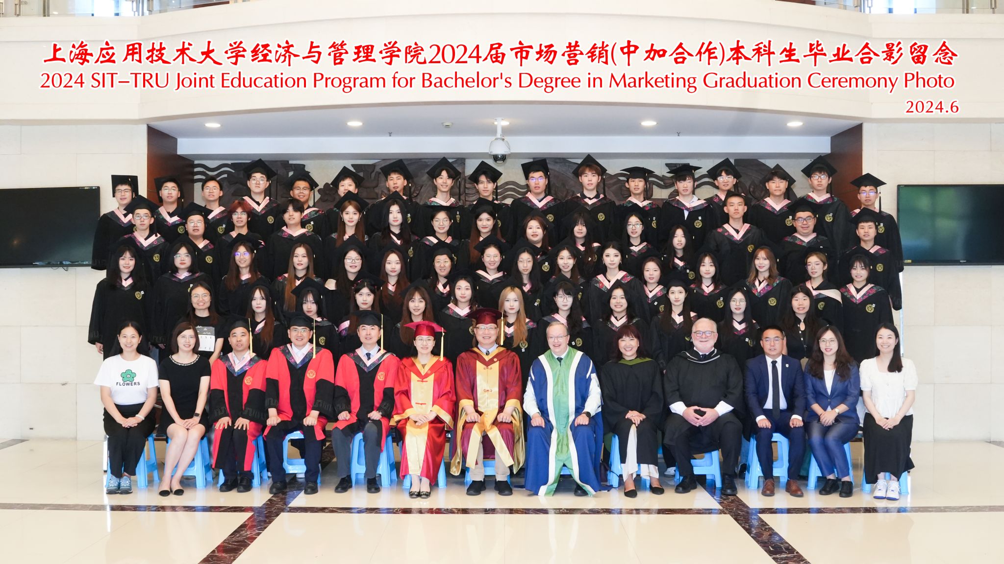 6月24日,学校举行2024届市场营销(中加合作)专业毕业典礼。上海应用技术大学校长汪小帆,校党委副书记、副校长王瑛,加拿大汤姆逊大学校长布雷特·费尔贝恩,副校长白桦出席典礼。国际交流处处长陈青长、经济与管理学院院长熊焰、经济与管理学院党委书记侯建生、汤姆逊大学工商管理与经济学院院长麦克·亨瑞参加仪式。