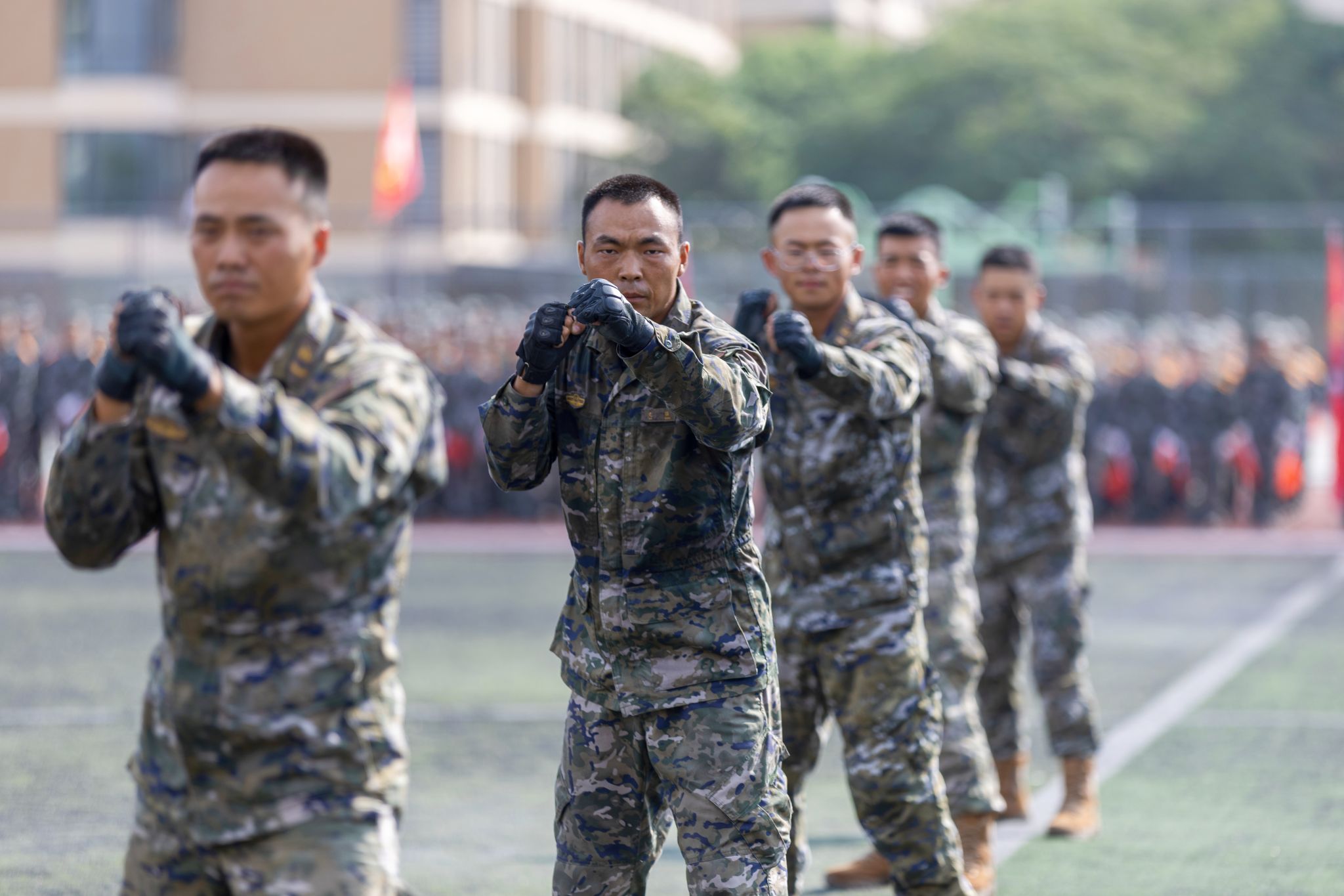 承训教官们带来的军体拳表演惊艳全场,身形矫健如虎,气势如虹,尽展军人的非凡力量和气度。