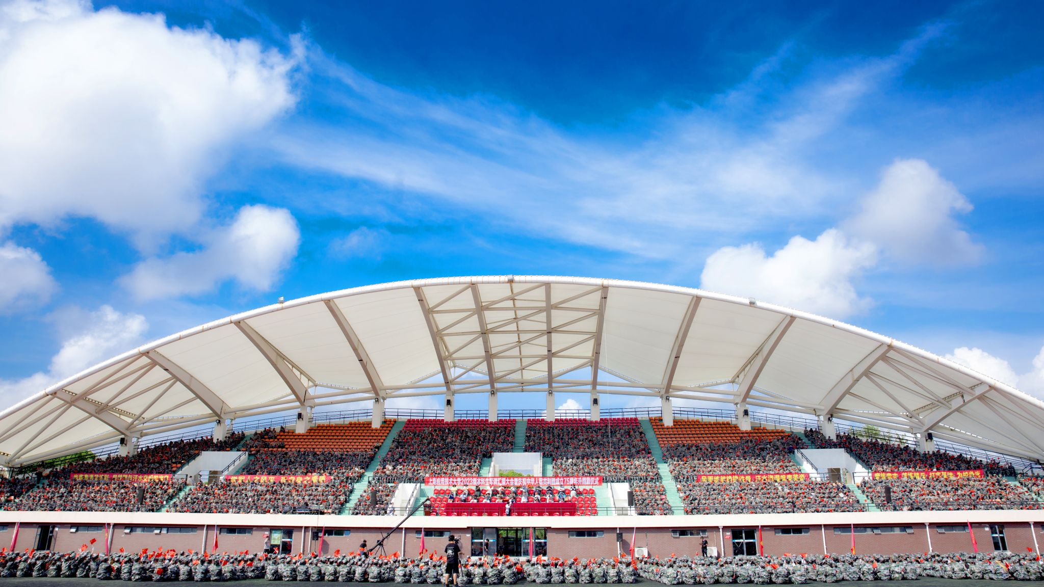 军训汇报大会后,校领导、军训旅领导与全体承训部队教官、教导员指导员及助训教官合影留念。