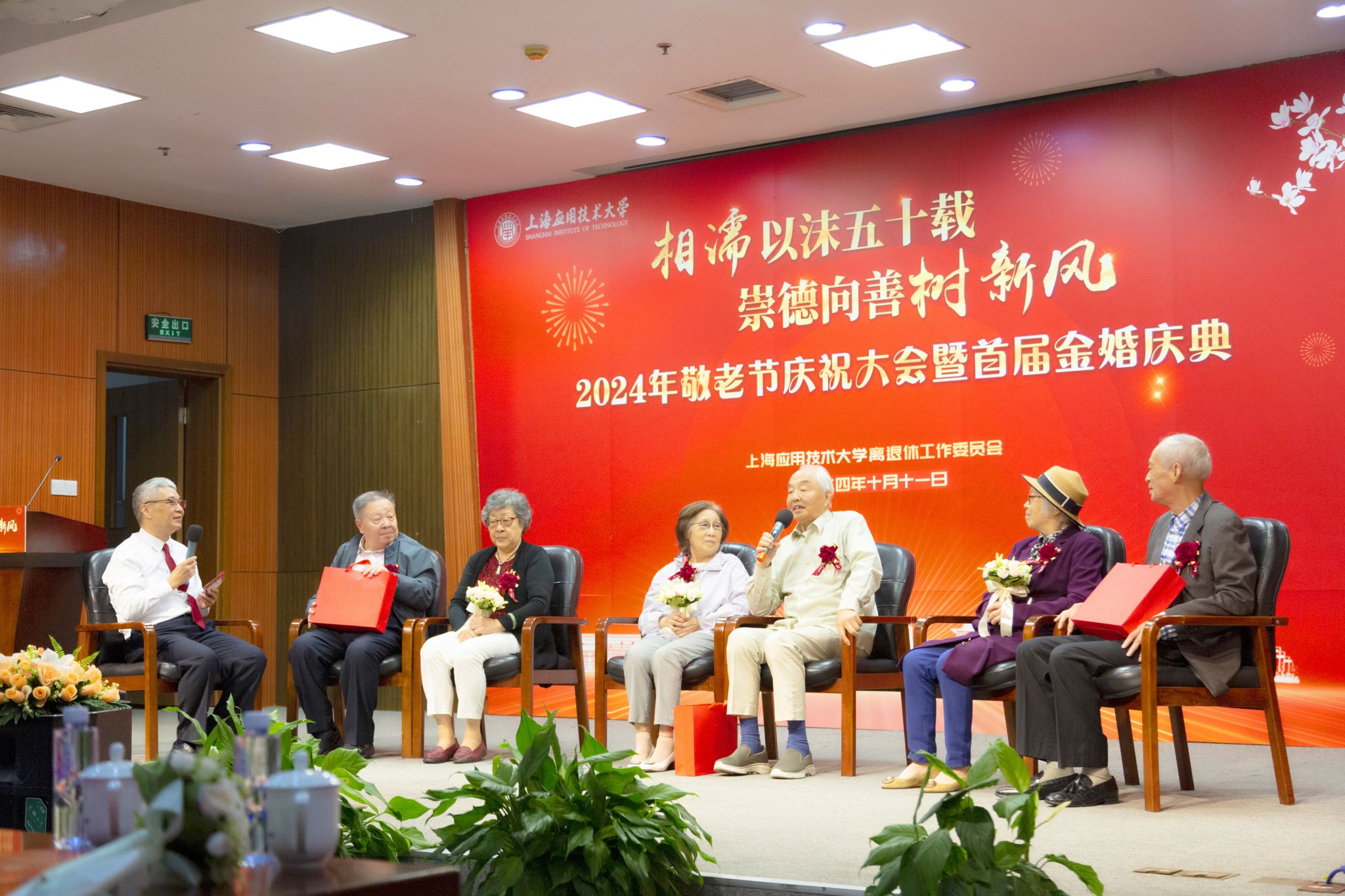 九九重阳节,浓浓敬老情。10月11日,上海应用技术大学“相濡以沫五十载,崇德向善树新风”敬老节庆祝大会暨首届金婚庆典在徐汇校区举行。校党委书记郭庆松,校党委副书记陈海瑾出席,向老同志们致以诚挚的问候和节日的祝福。