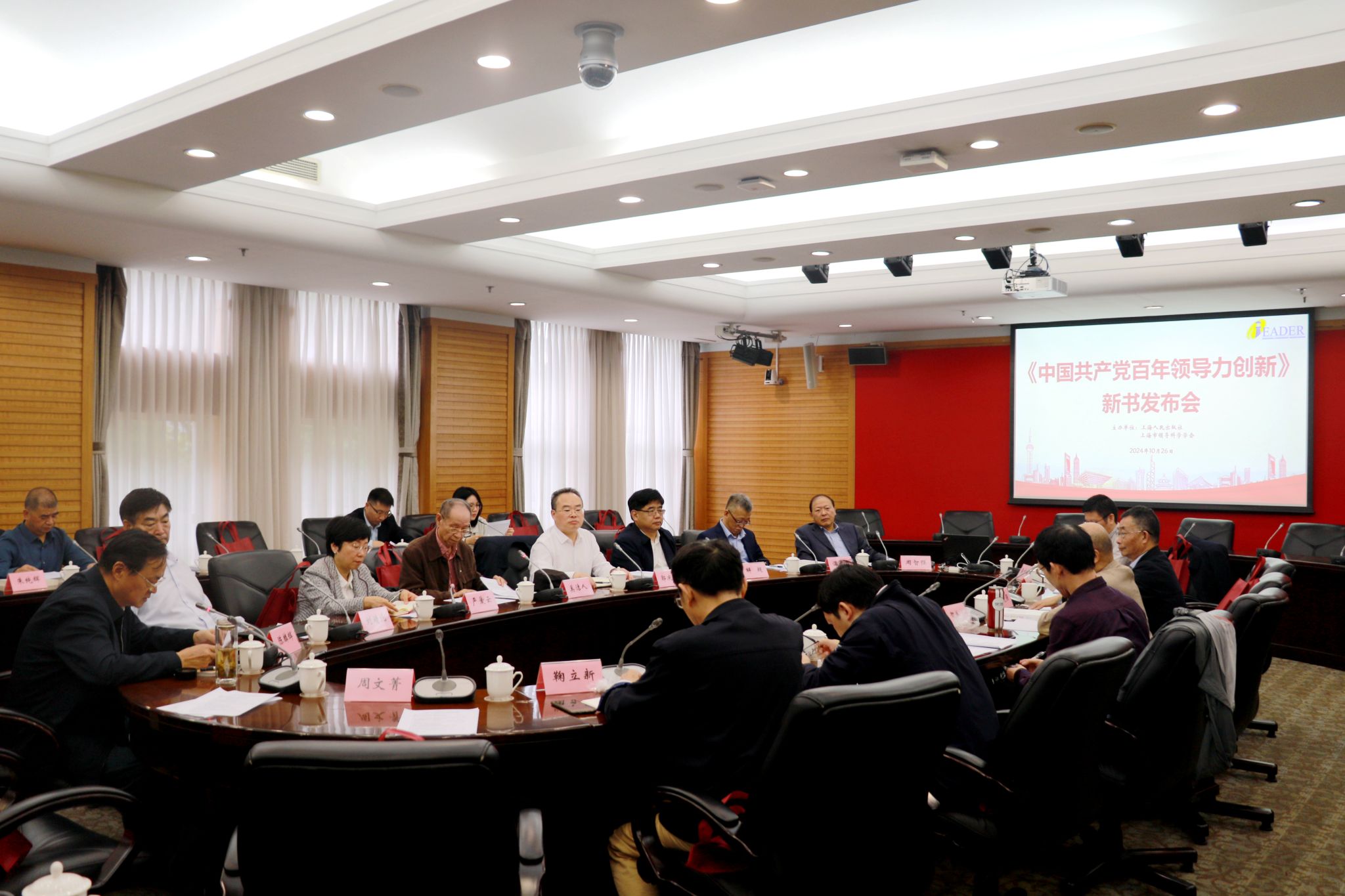 市社联党组书记、专职副主席王为松为该书出版致贺信。发布会上,学会创始会长、中国浦东干部学院首任常务副院长奚洁人介绍该书研究和出版情况,中共上海市委党史研究室主任严爱云,上海人民出版社党委书记、社长温泽远分别致辞并讲话,上海立信会计金融学院党委书记、中国科学社会主义学会副会长、上海科学社会主义学会会长解超教授,中国浦东干部学院原副院长、中国特色社会主义理论研究会副会长、中国领导科学研究会学术委员刘靖北教授,解放日报原党委副书记、上海社会科学普及研究会会长周智强高级编辑,新书作者华东师范大学丁晓强教授等分别从各个角度畅谈了对该书的理解。学会副会长、文化领导力专委会主任、上海市社会科学界联合会原党组成员、二级巡视员陈麟辉研究员,学会副会长、中国浦东干部学院马克思主义教研部原主任于洪生教授主持发布会。