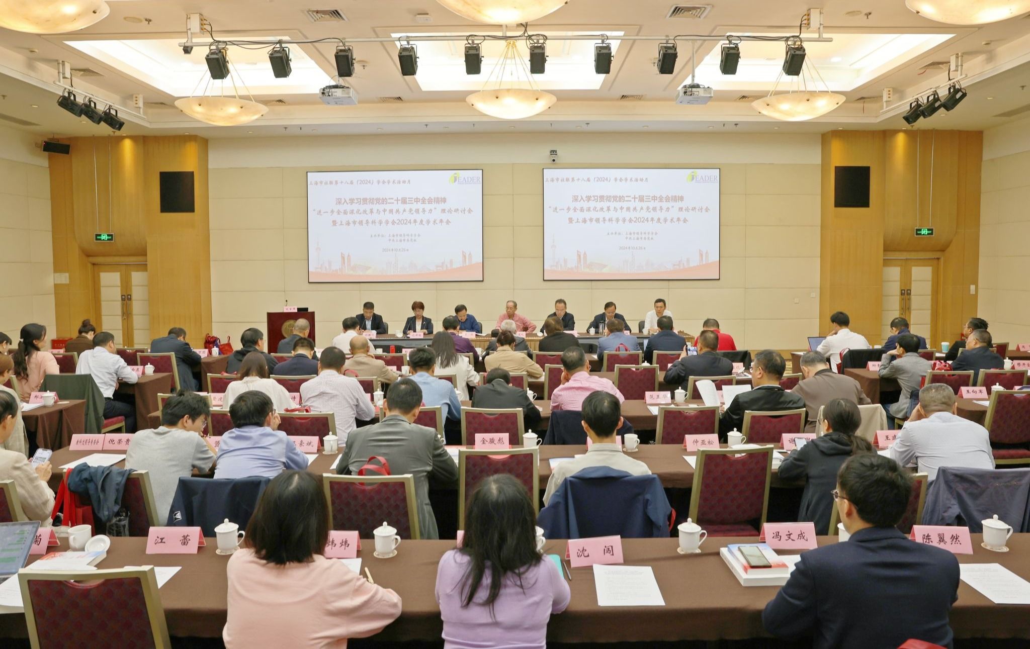 作为深入学习贯彻党的二十届三中全会精神的重要举措,“进一步全面深化改革与中国共产党领导力”理论研讨会暨上海市领导科学学会2024年度学术年会于10月26日在上海市委党校召开,当天上午举行了上海市领导科学学会和上海人民出版社联合主办的由奚洁人和郭庆松领衔的新著《中国共产党百年领导力创新》发布会,校党委书记、中国领导科学研究会副会长、上海市领导科学学会会长郭庆松分别出席并发言。