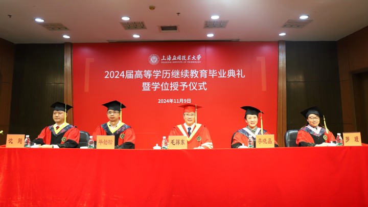 11月9日上午,上海应用技术大学2024届高等学历继续教育毕业典礼暨学位授予仪式在徐汇校区举行。副校长毛祥东出席并讲话,继续教育学院院长李晓晶、直属党支部书记毕劲松、教师代表、2024届毕业生代表及亲属300多人齐聚一堂,共同见证这个难忘的时刻。继教学院副院长沈刚主持毕业典礼。