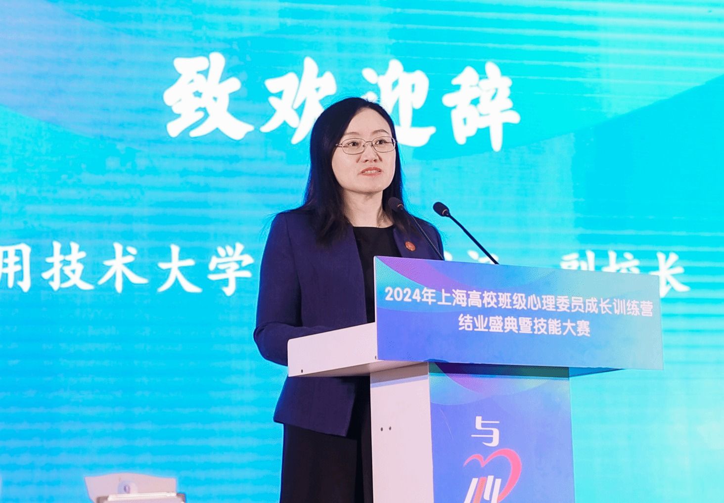 王瑛在致辞中向圆满完成训练营任务并通过考核的学员表示祝贺,向一直以来为守护学生心理健康的老师们表示崇高的敬意和衷心的感谢。她说,班级心理委员是高校学生心理工作队伍的重要组成部分,是学校心理危机干预快速反应通道中的“最前哨”,发挥着不可替代的重要作用。上海应用技术大学将以高校班级心理委员成长训练营和技能大赛为平台,致力于为更多的高校和更多优秀的班级心理委员搭建彼此联结的平台,为搭建起青年学生成长的舞台贡献上应力量。