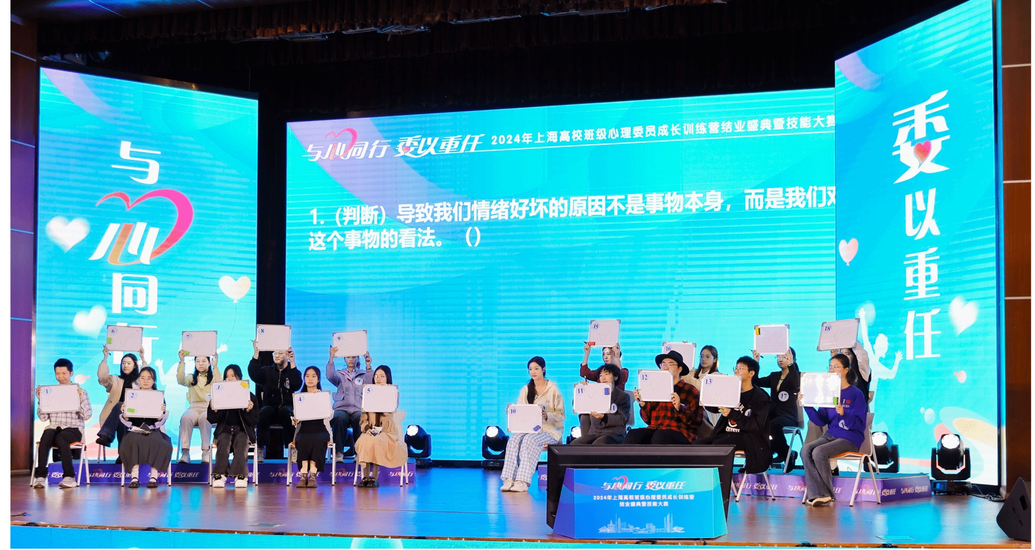 前期上海50所高校经过校内初赛选拔,选送了99名学员进入上海高校班级心理委员成长训练营。训练营为期四周,采用线上线下相结合的方式,训练内容包括心理委员角色定位与自我成长、谈心谈话技能、大学生常见心理问题识别和应对,人际关系和心理活动组织开展等。通过线上自学、专题讲座、团体活动和总结考核,18名选手入围技能大赛。