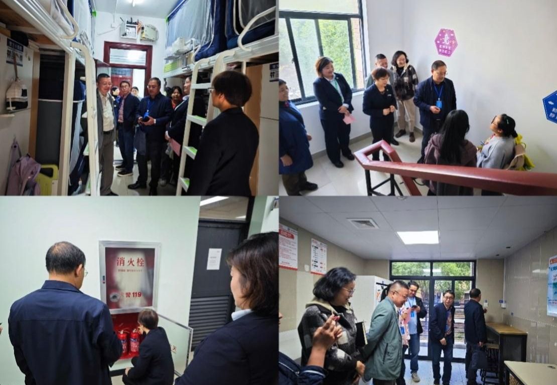 专家组还实地查看奉贤校区8号楼宇,对该学生公寓的环境、各类硬件设施、台账记录等进行检查评估。