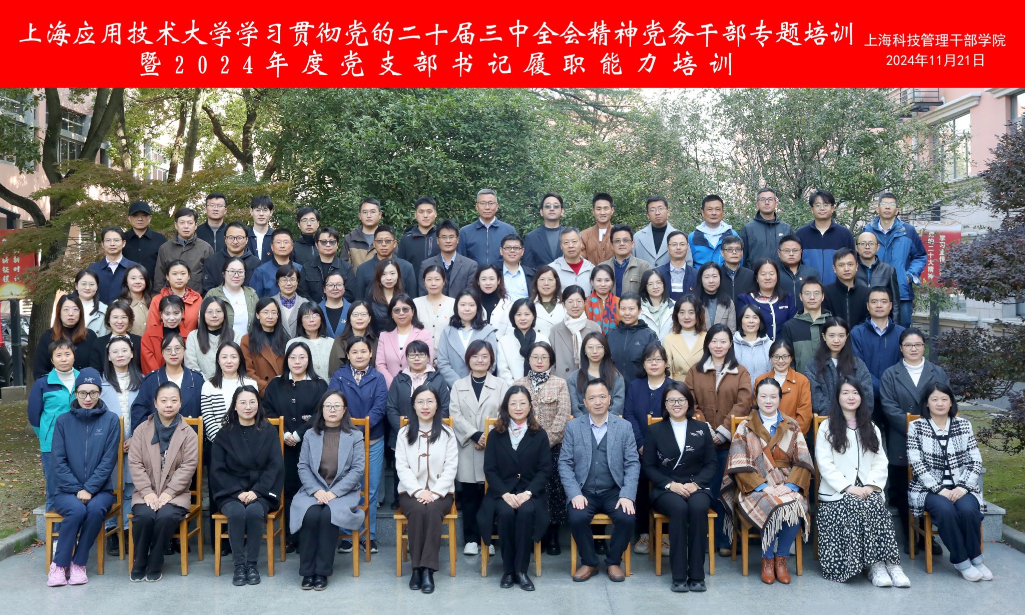 11月21日-11月22日,学校举办学习贯彻党的二十届三中全会精神党务干部专题培训暨2024年度党支部书记履职能力培训班。上海科技管理干部学院党委书记李敏,学校机关党委书记、党校副校长、党委组织部副部长于有进,党委组织部副部长吴敏出席开班式。全校80余名党务干部参加培训。