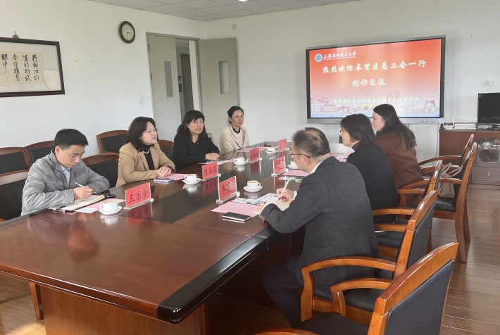 4月12日,奉贤区总工会党组书记、常务副主席邵丹华一行来访我校,校党委副书记陈海瑾代表学校热情接待,双方进行座谈交流。
