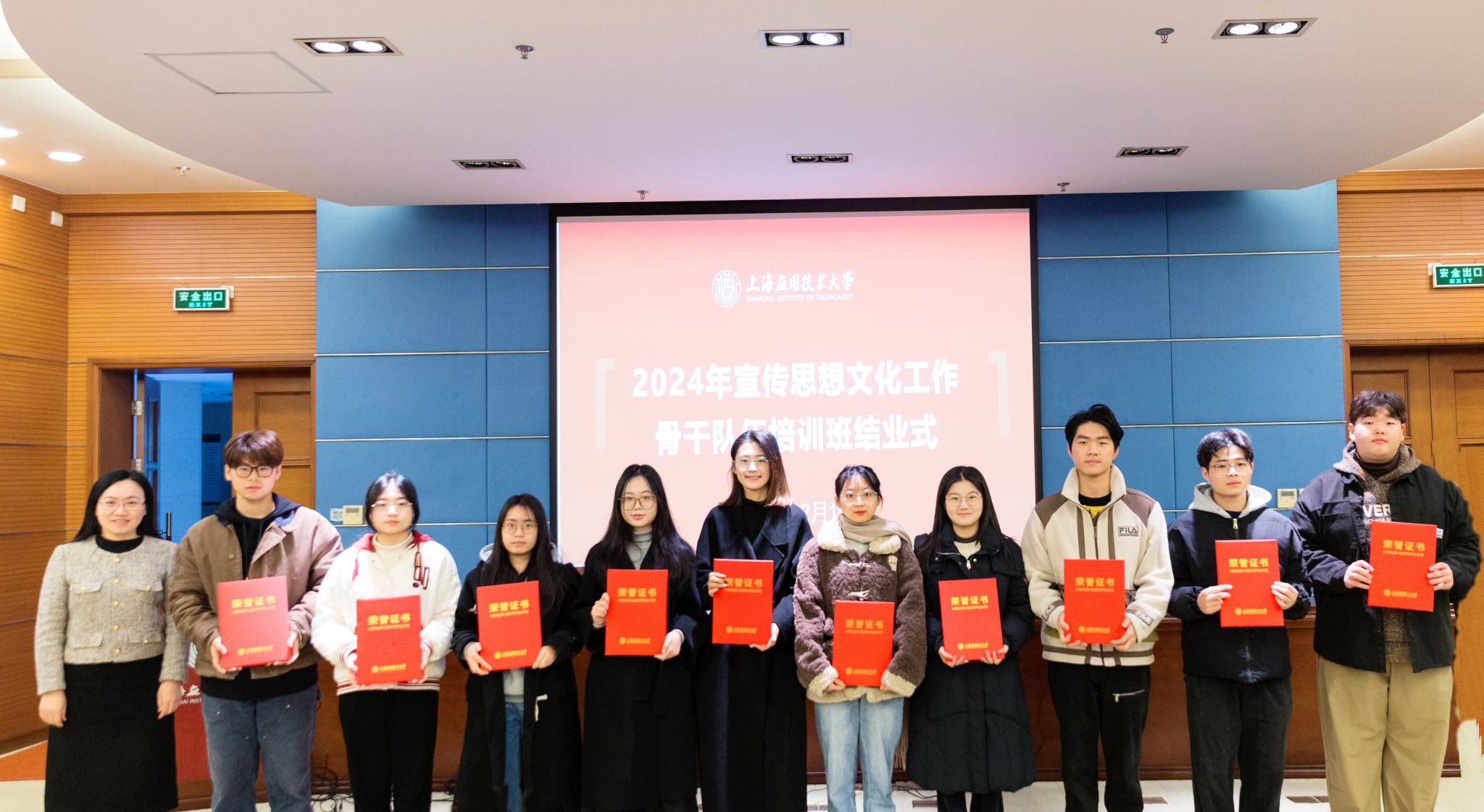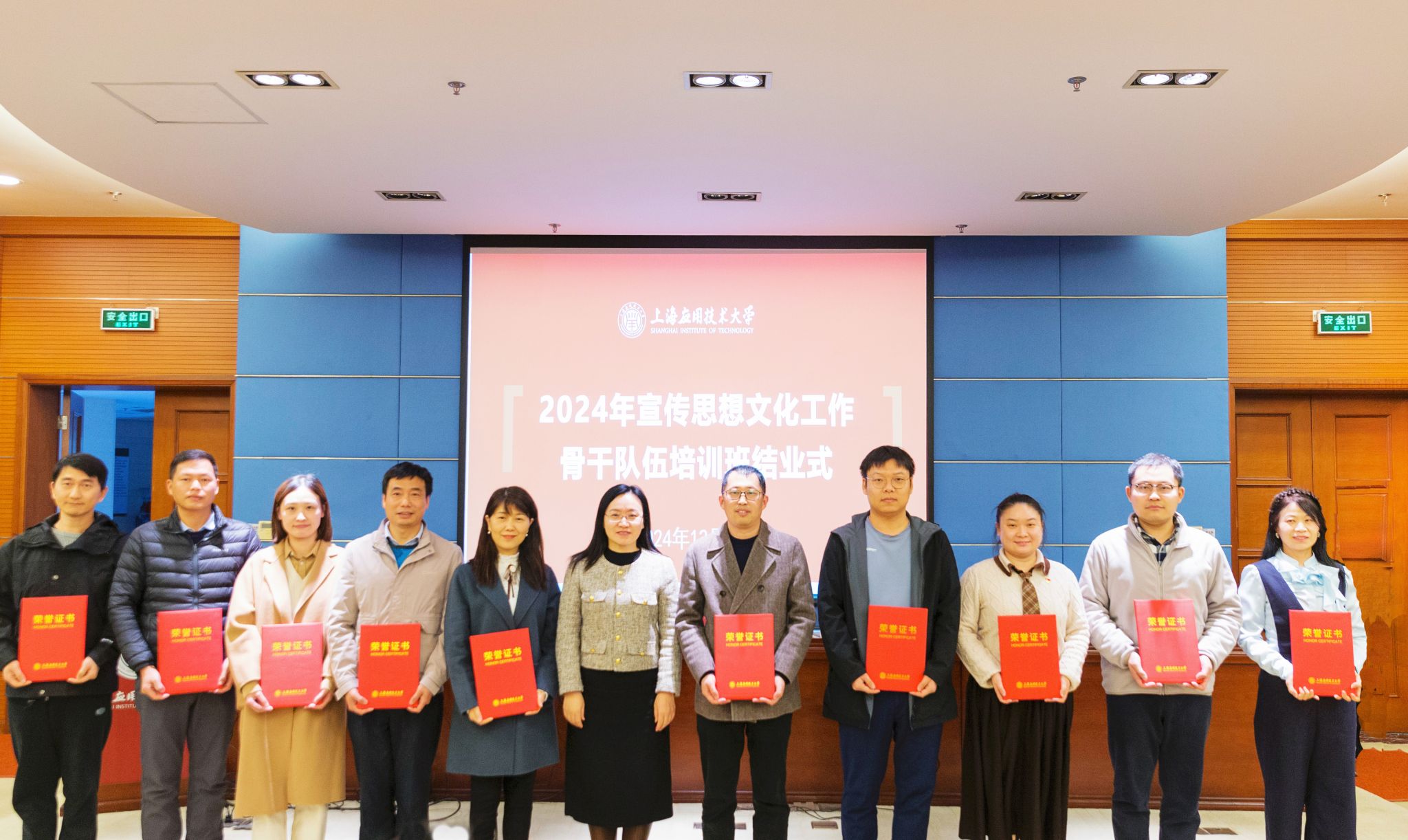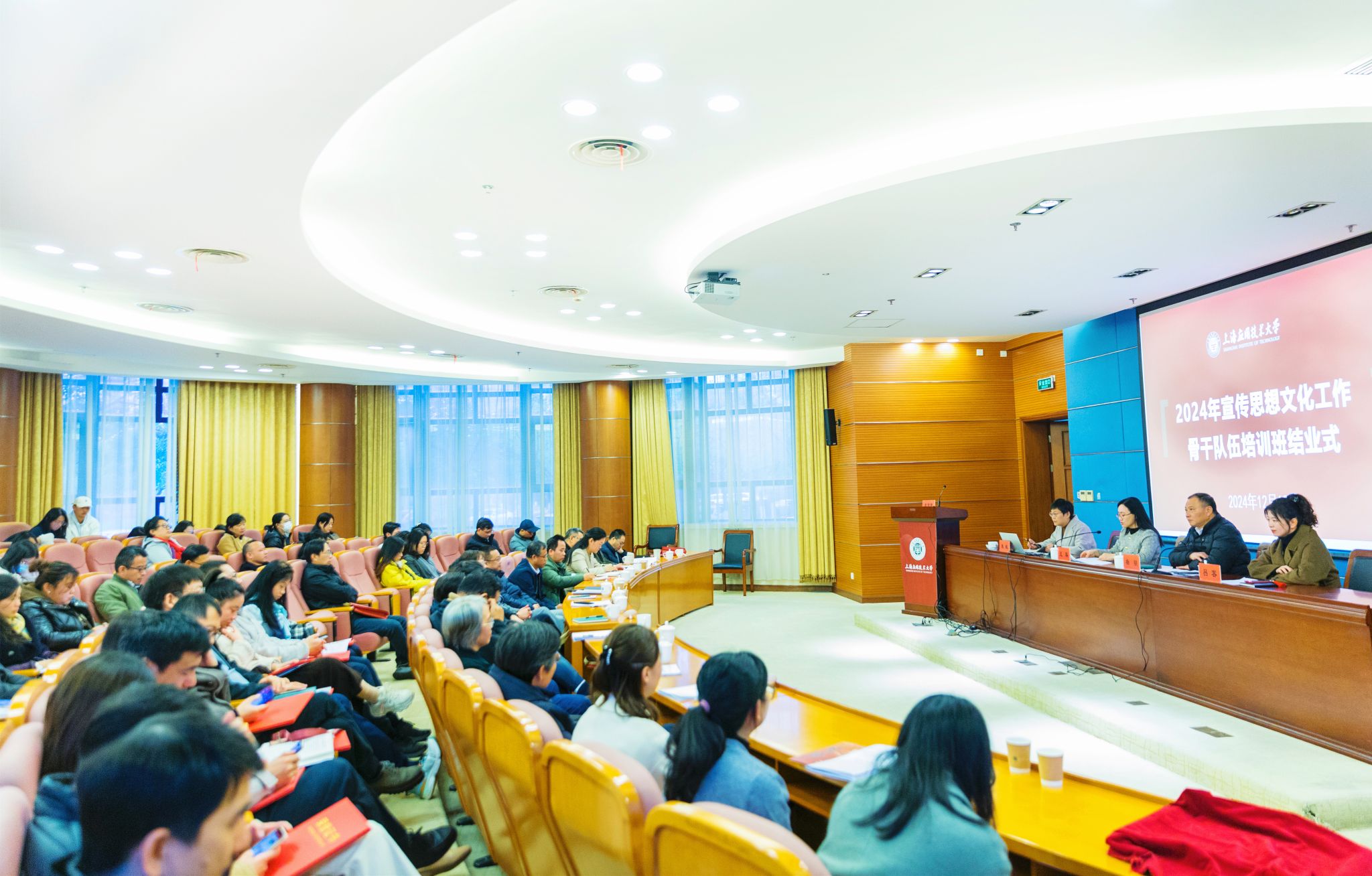 12月10日,学校举行2024 年宣传思想文化工作骨干队伍培训班结业仪式,校党委副书记、副校长王瑛出席并作总结讲话。校党委常委、党委宣传部部长杨明,副部长朱敏、吕客出席并作工作交流。培训班全体学员参加。