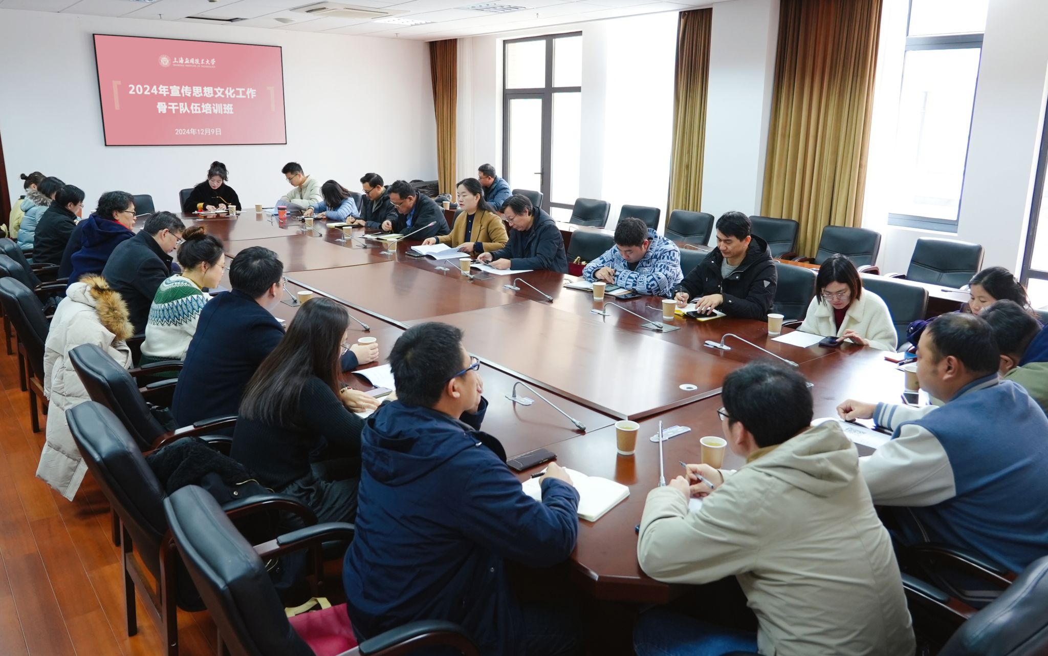 杨明表示,近年来学校宣传思想文化工作坚持以习近平新时代中国特色社会主义思想指导,深入学习贯彻党的二十届三中全会精神和习近平文化思想,自觉担负“举旗帜、聚民心、育新人、兴文化、展形象”的使命任务,开拓进取、守正创新,不断开创新时代学校宣传思想文化工作新局面,为建设具有国际影响力的高水平应用创新型大学提供强大的精神动力和舆论支持。他从“强化政治站位,凝聚全面深化改革思想力量”“强化历史担当,将七十载璀璨篇章载入学校史册”“强化内外宣传,立体展现高水平应用创新大学形象”“强化文化育人,打造上应大特色文化品牌”四个方面详细介绍了宣传思想文化工作总体情况和所取得的成绩。