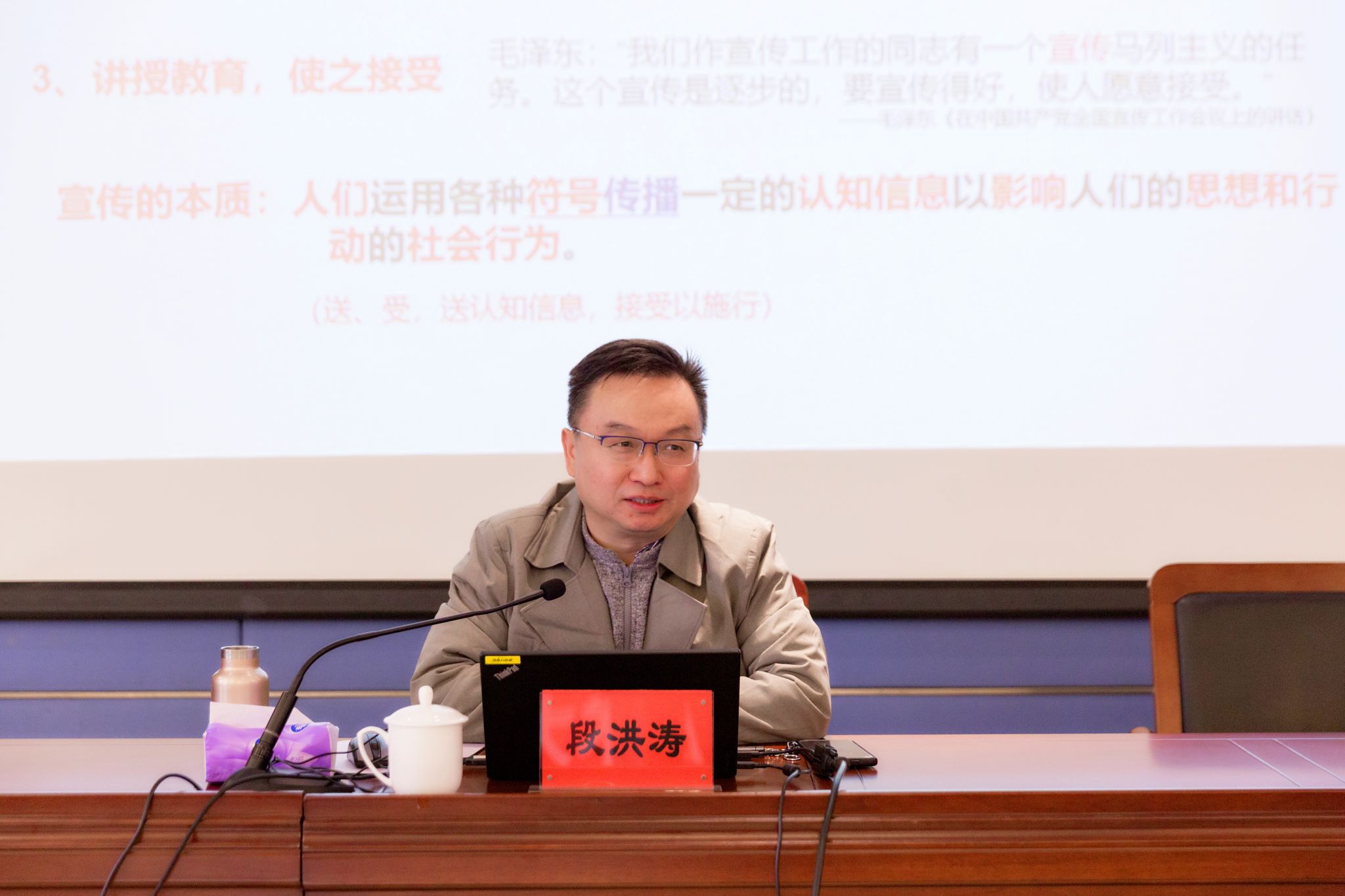 复旦大学美国研究中心副主任、教育部美国联合研究院副院长赵明昊教授带来的《从中美博弈看我国国际形势与对外传播》专题讲座和上海教育系统网络文化发展研究中心副主任段洪涛带来的《宣传工作中的网络舆情风险:表现与规避》讲座,向全体学员讲授了意识形态领域的风险无处不在、无时不有,必须强化风险意识,发扬斗争精神,增强斗争本领,牢牢掌握意识形态领域斗争主动权。