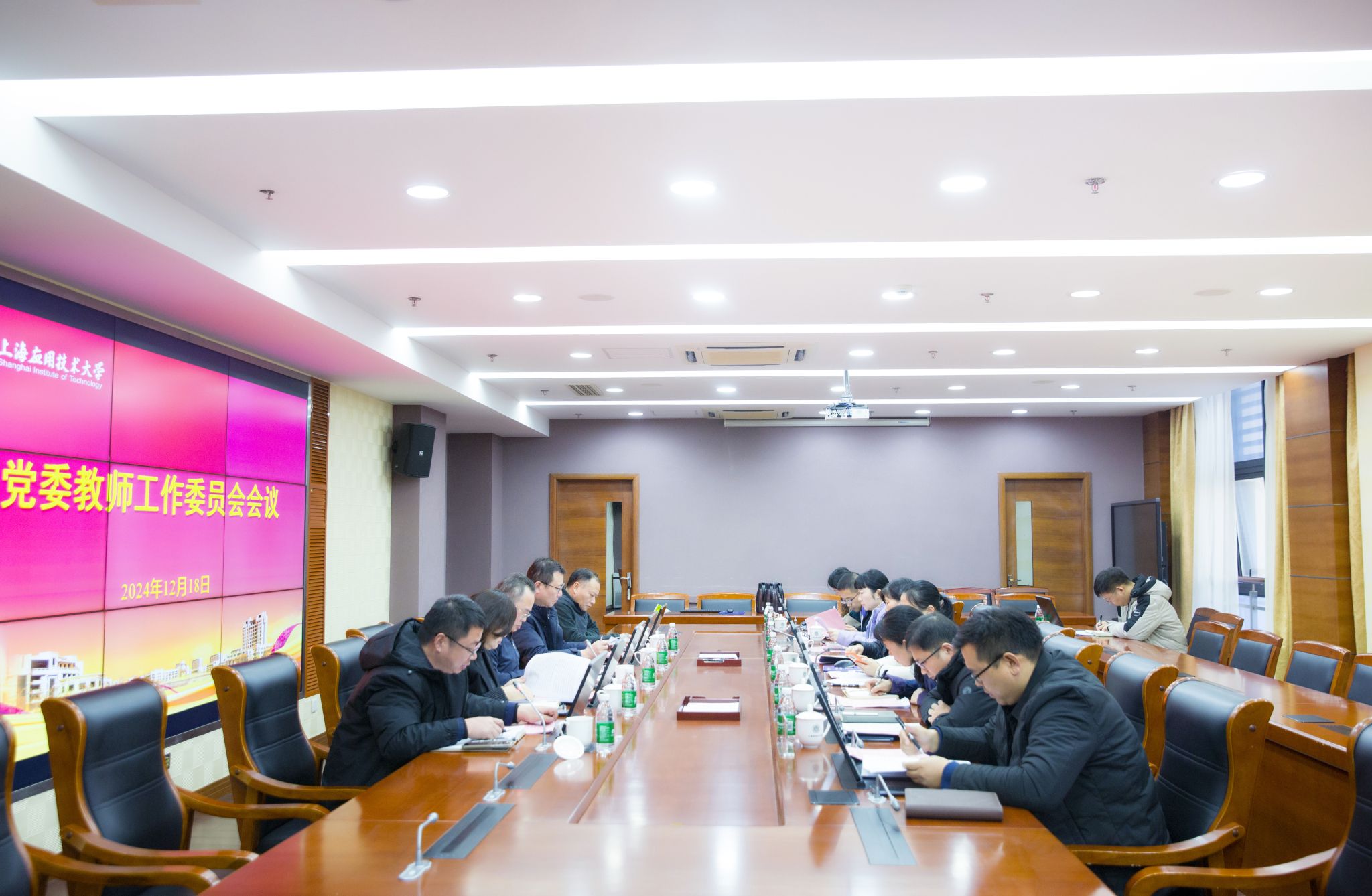 会上,相关成员单位汇报了2024年教师思想政治和师德师风建设工作,学习讨论了《普通高等学校教师党建和思想政治工作质量标准(试行)》,审议了《上海应用技术大学师德失范行为调查处理流程图》。