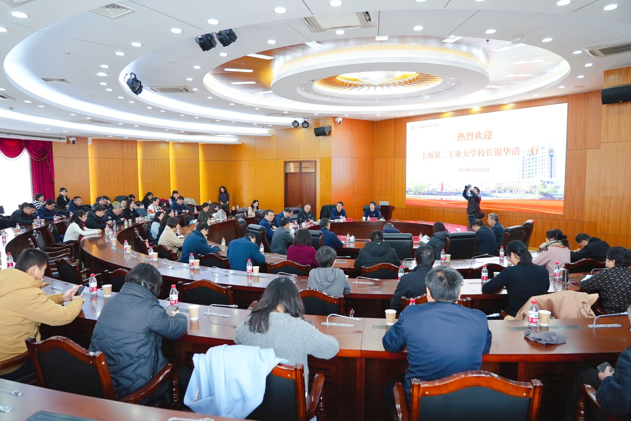 12月20日,由党委副书记、校长谢华清,党委副书记吴沛东带队的第二工业大学中层干部五十余人来访我校,就如何建设高水平应用创新型大学进行交流座谈。校长汪小帆,校党委副书记陈海瑾,副校长毛祥东,党委常委、党委宣传部部长杨明,党委常委、党委组织部部长王占勇共同接待到访来宾。