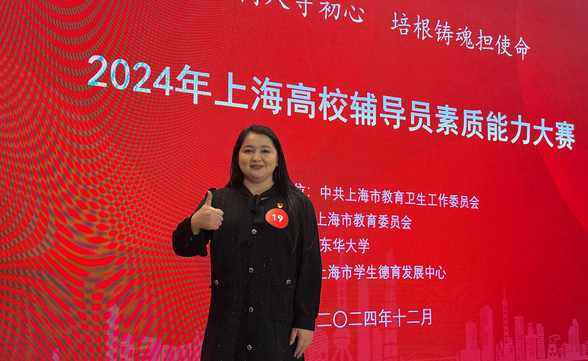近日,2024年上海高校辅导员素质能力大赛在东华大学顺利举行,经过激烈角逐,我校辅导员米叶沙尔·外力斩获特等奖,辅导员彭烨获三等奖,党委学生工作部洪月娥获大赛优秀指导教师。获奖名次、获奖人数均取得突破,创造了学校参加上海高校辅导员素质能力大赛以来的最好成绩,交出了一份突破性答卷!