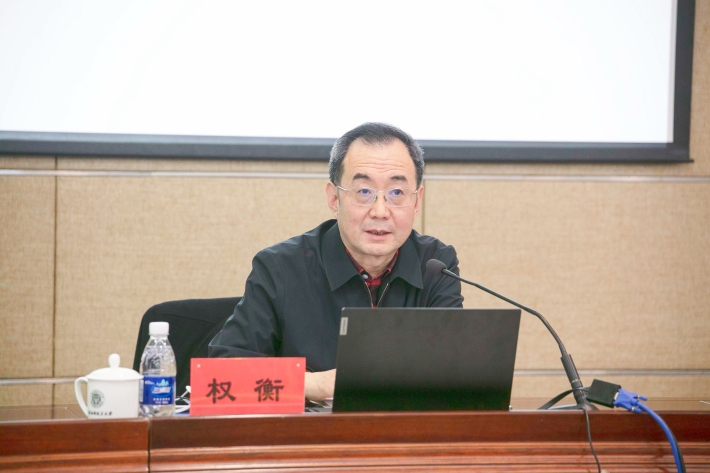 3月20日上午,校党委理论学习中心组举行集体(扩大)学习会,传达学习十四届全国人大一次会议和全国政协十四届一次会议精神。全国人大代表、上海社会科学院党委书记权衡应邀作辅导报告。校党委书记、党委理论学习中心组组长郭庆松主持。校党委副书记、校长柯勤飞,校党委副书记、副校长王瑛,校党委副书记陈海瑾,校党委副书记、纪委书记李健,党委常委、宣传部部长杨明,党委常委、组织统战部部长王占勇出席。