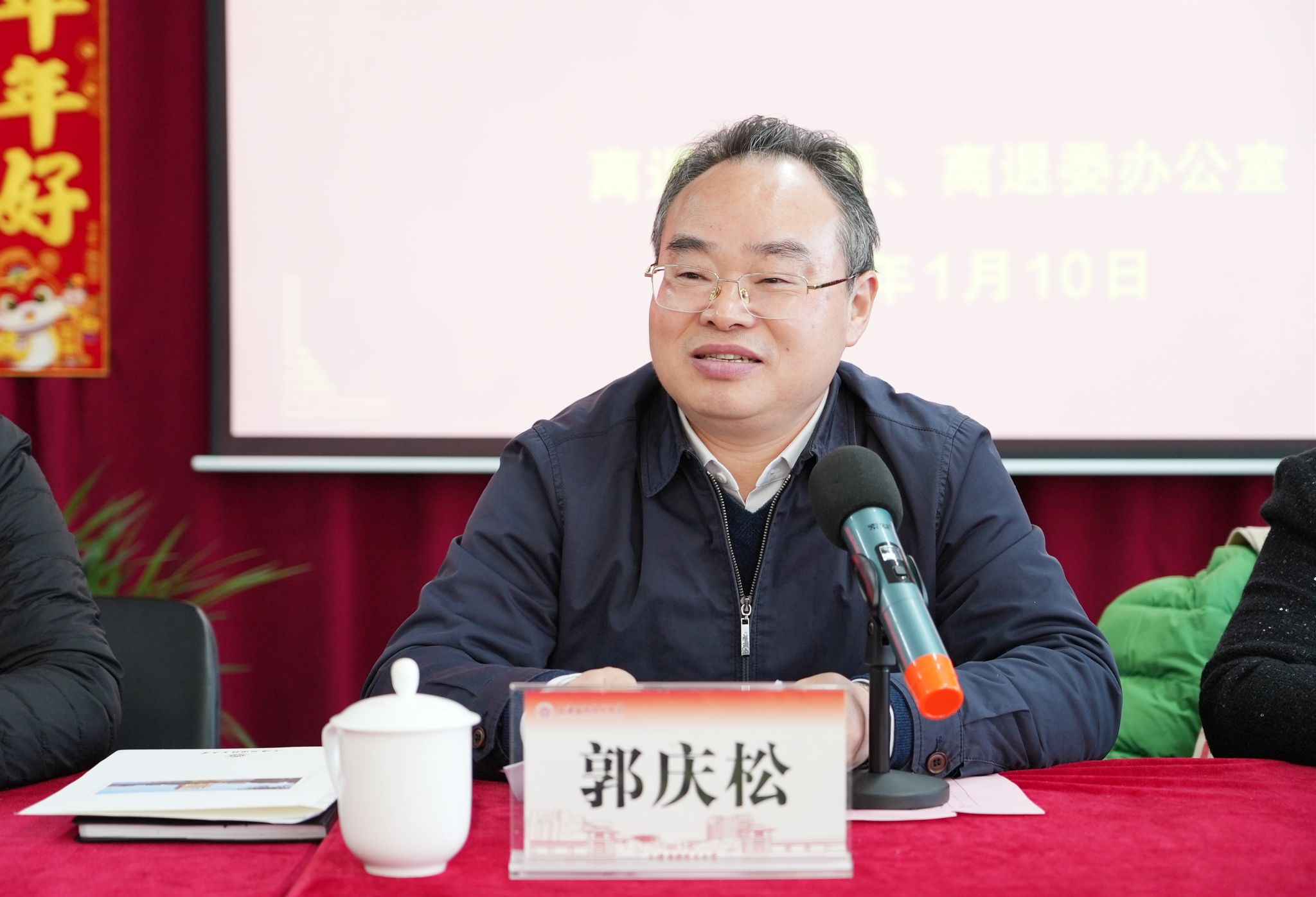 律回春渐,新元肇启。1月10日,学校举办2025年离退休老干部、老教授迎新团拜会。校党委书记郭庆松出席并讲话,党委副书记陈海瑾主持会议。退休老干部、老教授代表欢聚一堂,畅叙深厚情谊、畅议教育使命、畅谈学校发展,共迎乙巳蛇年新春。