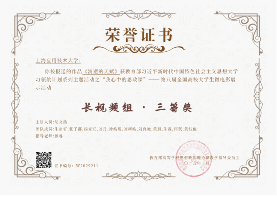 近日,由教育部高校思政课教学指导委员会主办的“我心中的思政课”——第八届全国高校大学生讲思政课公开课展示活动和第八届全国高校大学生微电影展示活动的评选结果揭晓,我校马克思主义学院教师牛亏环指导的微思政课作品《以习近平文化思想推进新时代文化强国建设》荣获特等奖、马克思主义学院教师颜睿指导的微电影作品《消逝的天赋》荣获三等奖。