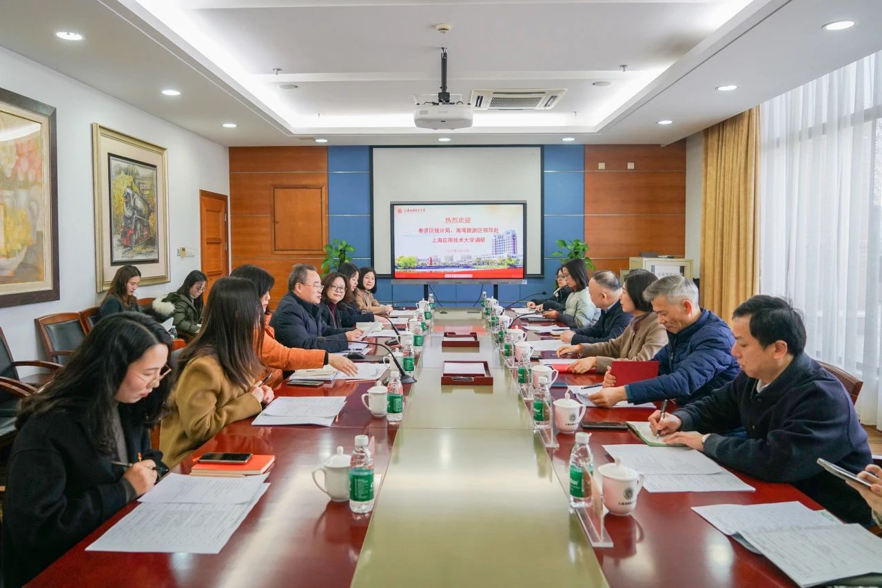 2月26日,校党委书记郭庆松、党委副书记陈海瑾热情接待了奉贤区统计局党组书记、局长钟争光和奉贤区海湾旅游区党工委书记姚红,党工委副书记、管委会主任李瑞忠一行,双方进行座谈交流。