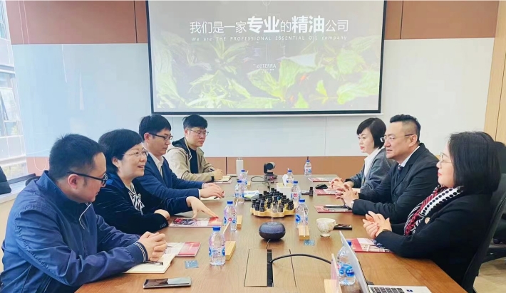 郭洁对柯勤飞一行的到访表示热烈的欢迎,她介绍了企业的发展历程,特别是十余年来在芳香护理和精油领域持续深耕所取得的一系列成就,希望双方在校企合作和科技成果转化、就业和实习基地等相关领域进一步加强合作,祝愿学校在未来能够取得更大的进步和更快的发展。