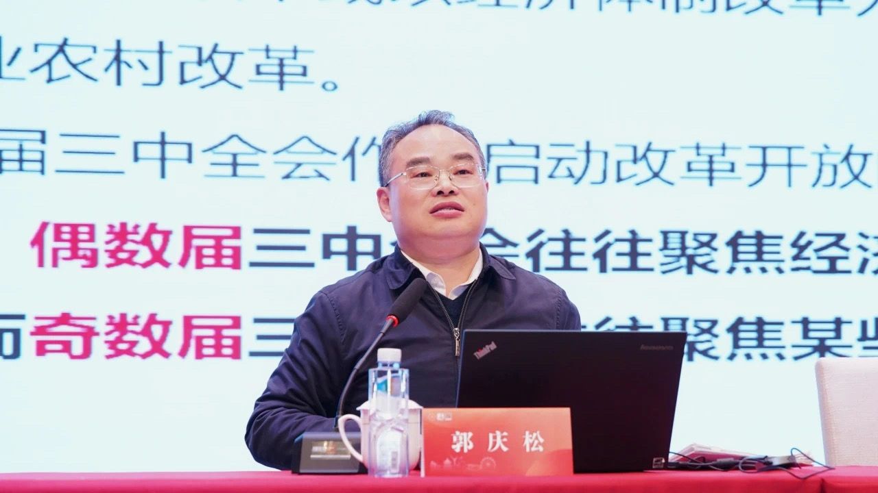 郭庆松以《进一步全面深化改革,推进中国式现代化——深入学习贯彻党的二十届三中全会精神》为题作“理润海湾”首场理论宣讲报告。郭庆松结合具体案例和个人研究,从“深刻领会紧紧围绕推进中国式现代化进一步全面深化改革这一重大主题”“深刻领会以经济体制改革为牵引来统筹各领域改革这一系统部署”“深刻领会提高党对进一步全面深化改革、推进中国式现代化的领导水平这一根本保证”三方面深入浅出地解读了党的二十届三中全会精神的重点内容和重大意义。