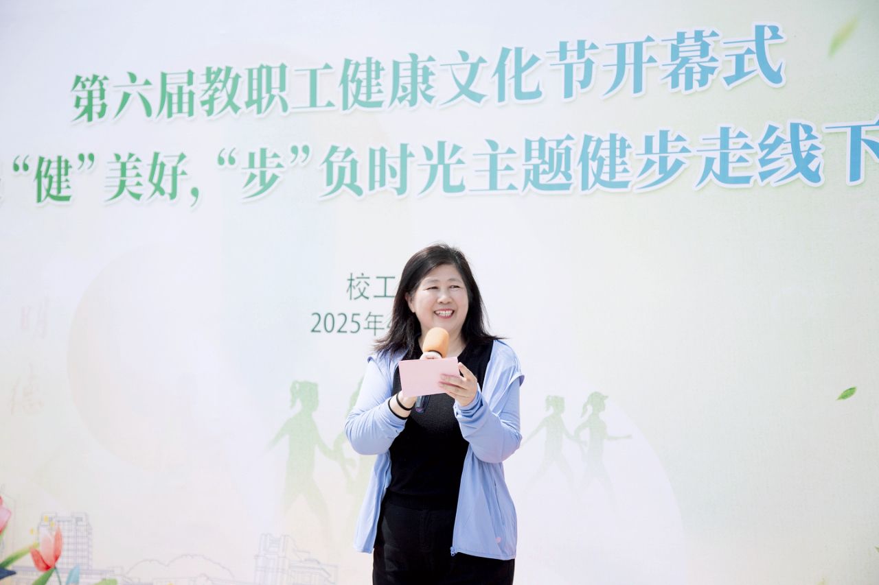 王瑛在开幕式上发表热情洋溢的致辞,宣布第六届健康文化节开幕。她指出,健康是人生的基石,党的二十大报告强调推进健康中国建设,国家持续推进“体重管理年”3年行动计划,这充分彰显了健康对于个人和社会的重要性。她表示,学校一直高度重视教职工的健康工作。自 2019 年起,已成功举办了五届健康文化节。如今,健康文化节的内容不断丰富,形式日益多样,涵盖健康知识普及、健身培训、体育竞赛,成为传播健康理念、凝聚团队力量的重要平台。