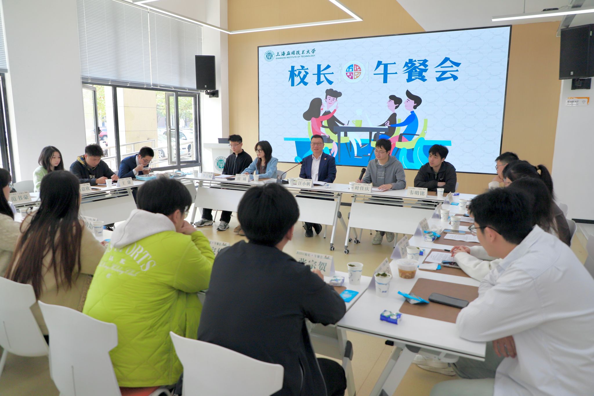 4月8日,学校在奉贤校区萱园举行2025年第一次“校长午餐会”,此次校长午餐会为2025届毕业生专场,校长汪小帆与毕业生代表面对面交流座谈,认真听取了毕业生代表对学校改革发展、人才培养、就业工作等方面的建议和意见。