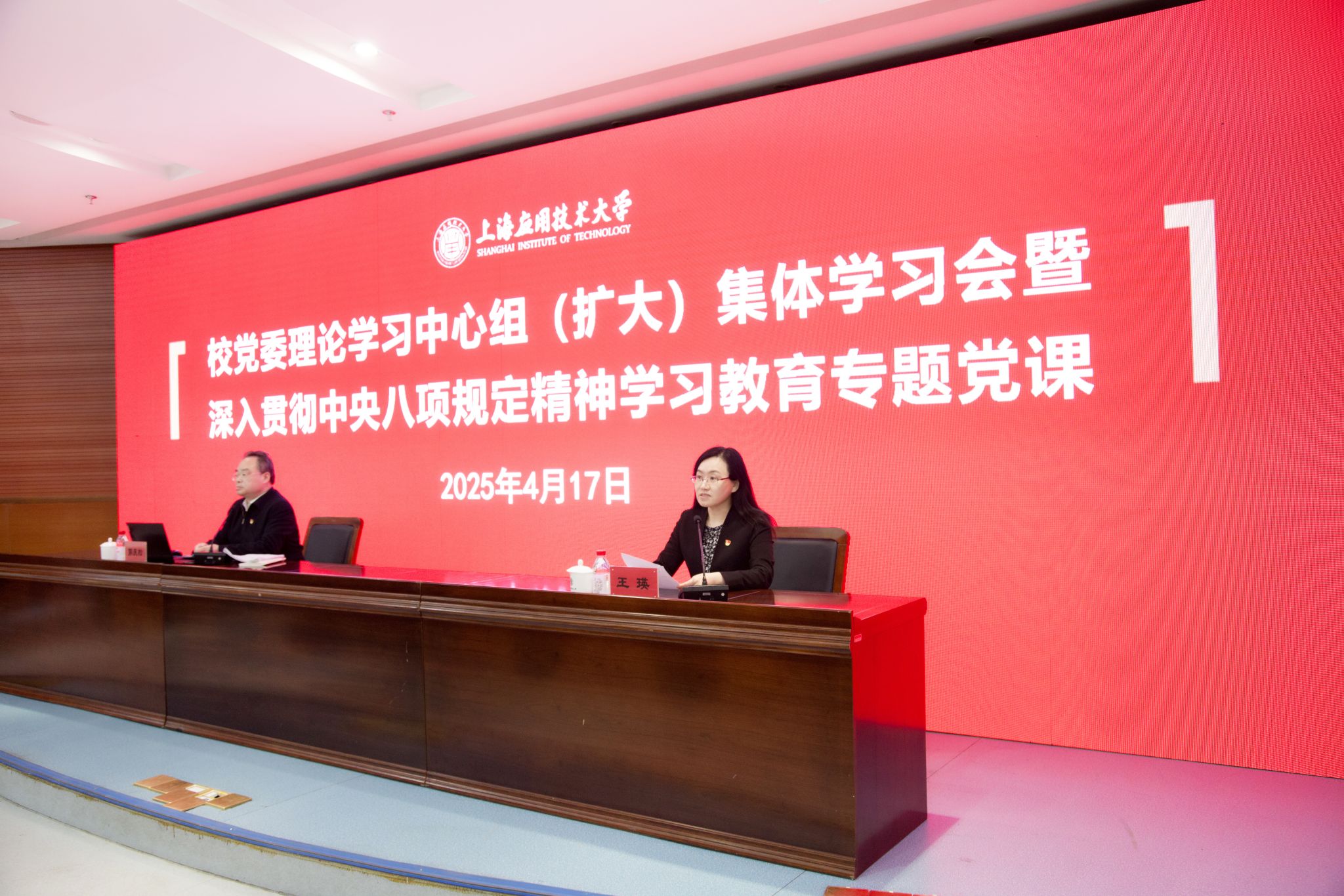 王瑛在主持时指出,深入贯彻中央八项规定精神学习教育是我校今年党建工作的首要任务。全校各级党组织要切实提高政治站位,履行主体责任,精心组织,推动学校深入贯彻中央八项规定精神学习教育走深走实、见行见效;各级党组织书记必须积极主动上好党课,不折不扣落实学习教育各项任务要求;要把开展学习教育与推动学校改革发展结合起来,以优良的党风政风引领校风学风和师德师风,为学校“十四五”规划圆满收官和科学谋划“十五五”建设蓝图、扎实推进学校教育综合改革提供坚强的政治保障。