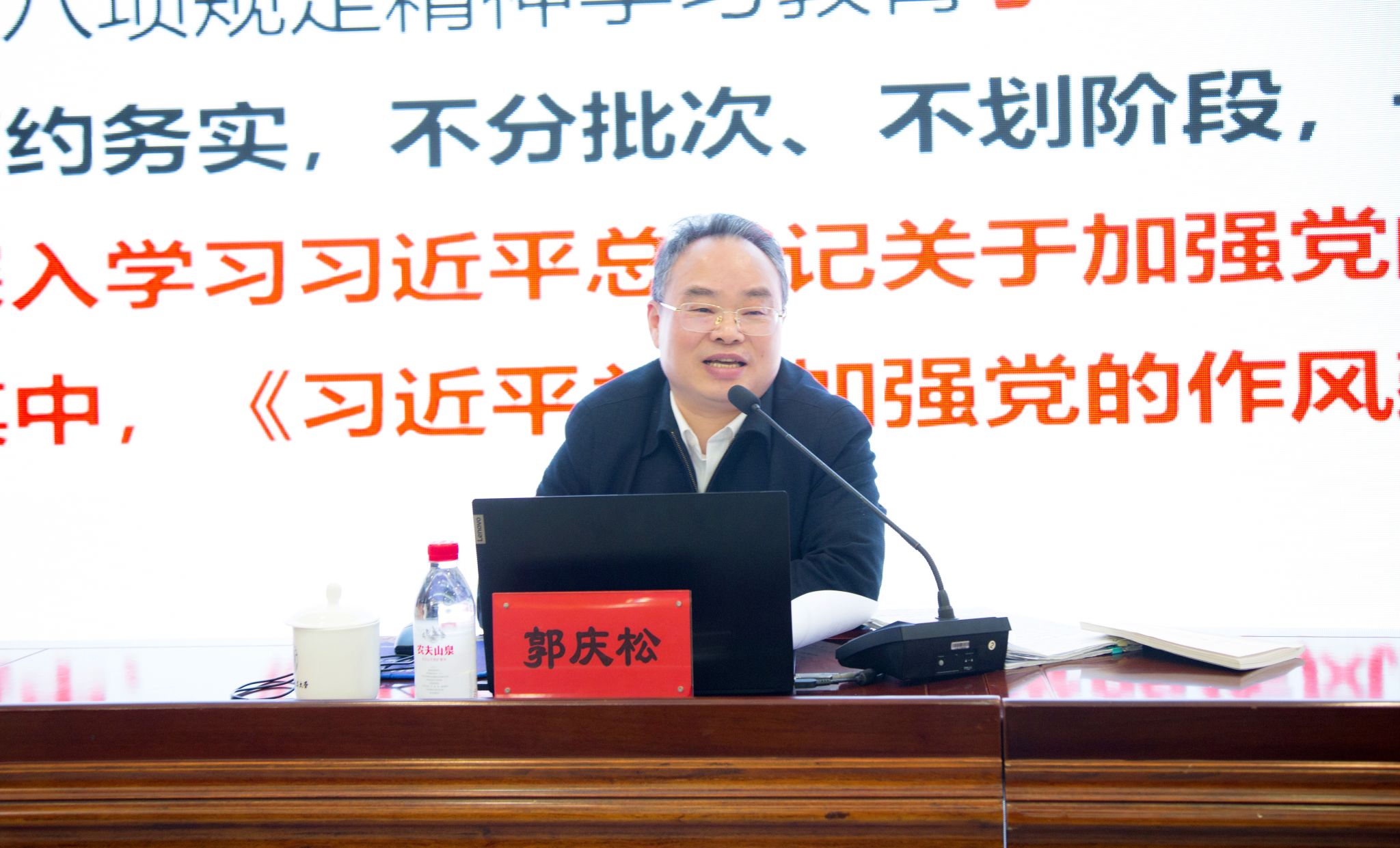 郭庆松从“党的作风关系人心向背”“中央八项规定是改进作风的切入口和动员令”“推进作风建设常态化长效化”三个方面,梳理了习近平总书记关于加强党的作风建设的重要论述,系统解读了中央八项规定的时代背景、核心内容及实践要求,深刻阐明了加强党的作风建设的极端重要性和抓好作风建设的关键着力点。