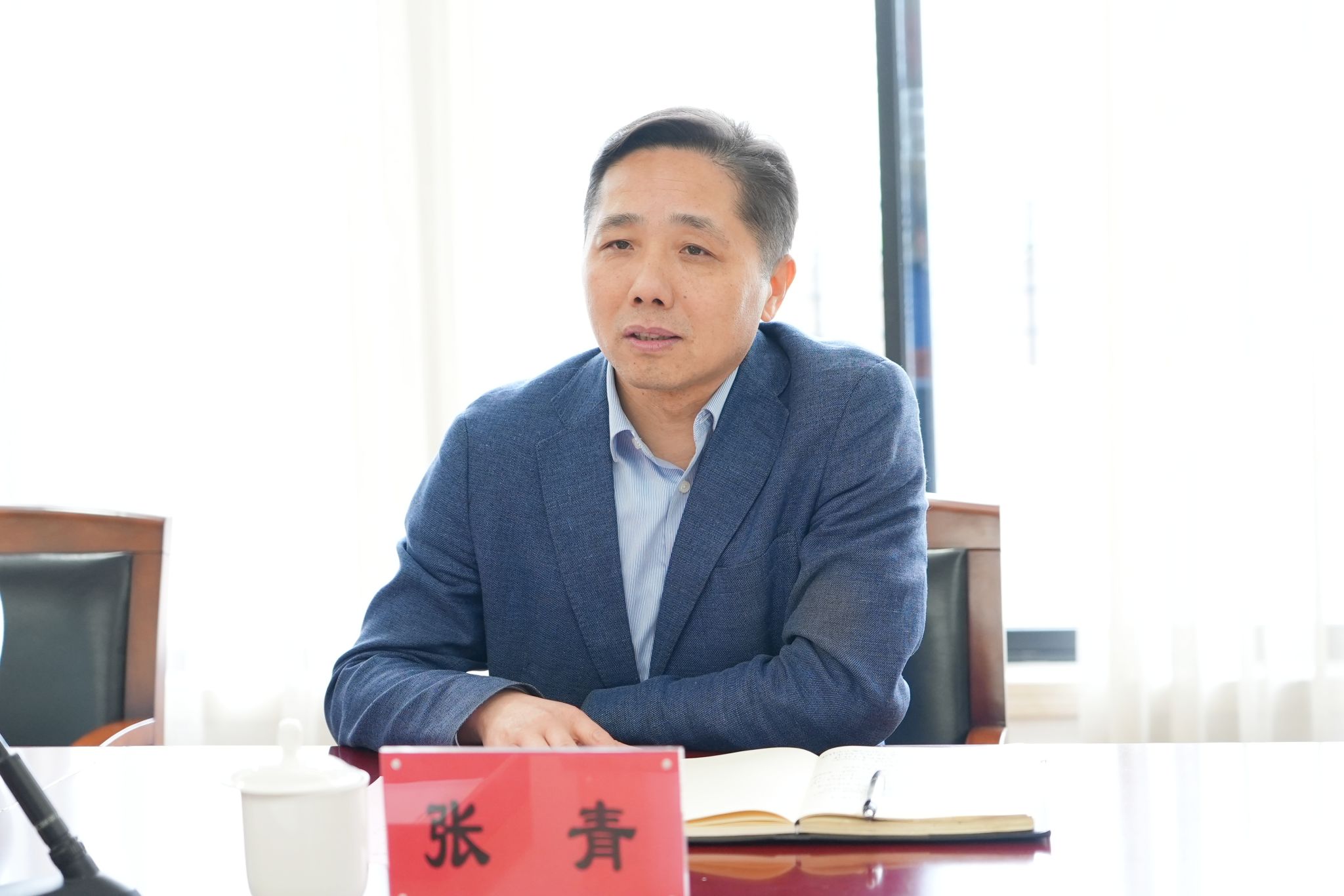 王占勇对张青一行的到来表示热烈欢迎。他表示,近年来,学校积极响应国家战略、顺应改革发展需求,结合区域特色定位,主动融入区域经济社会发展,助力地方产业升级,希望通过此次交流,充分发挥学校学科优势与科研积淀,进一步开展校地协同创新,携手推动相关领域发展,实现校地互利共赢。