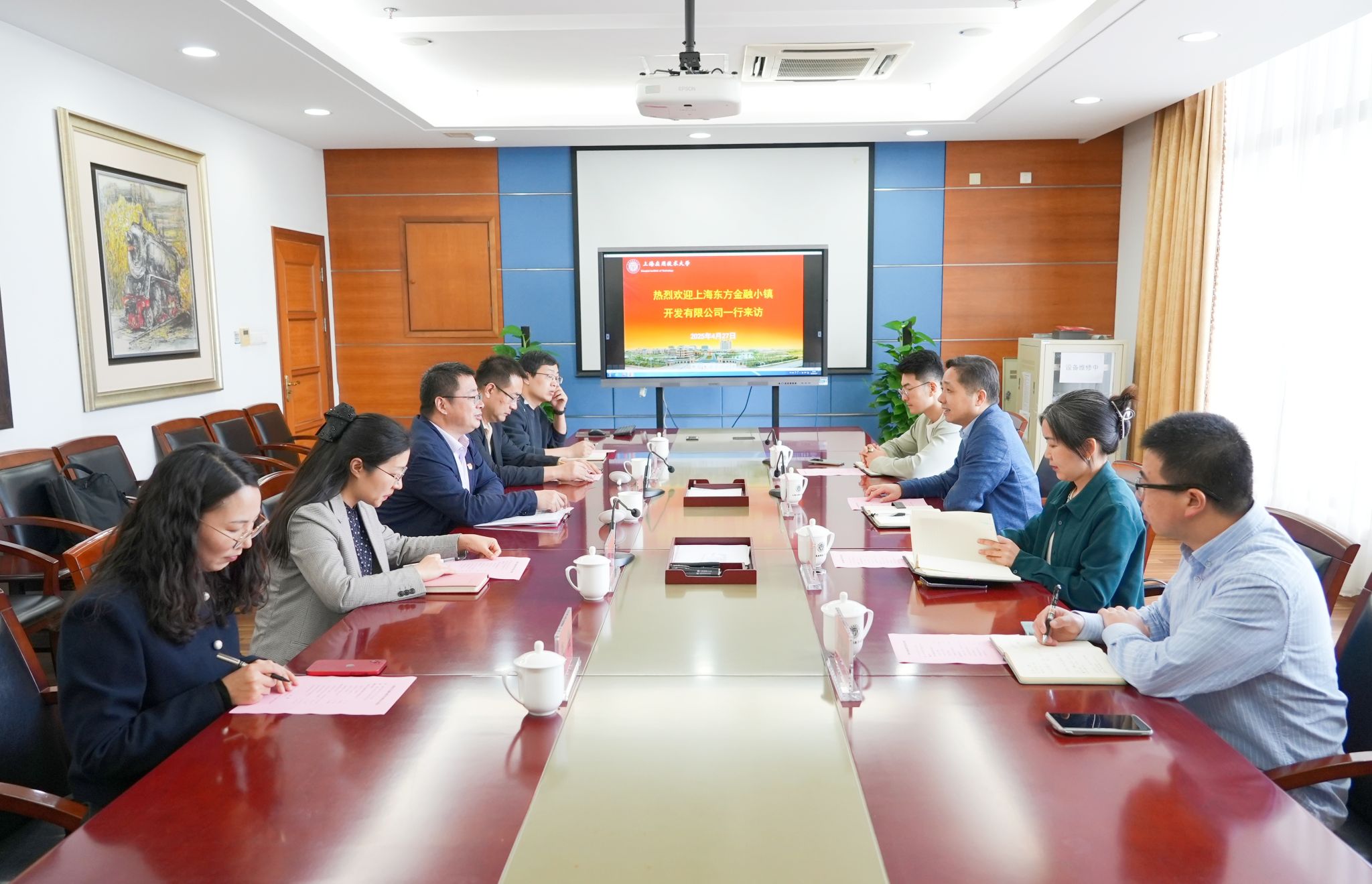 4月27日,上海东方金融小镇开发有限公司党委书记、董事长张青一行来访我校,校党委常委、副校长、党委组织部部长王占勇亲切会见。党委组织部、香料香精化妆品学部、上海应翔资产有限公司相关部门负责人参加座谈。