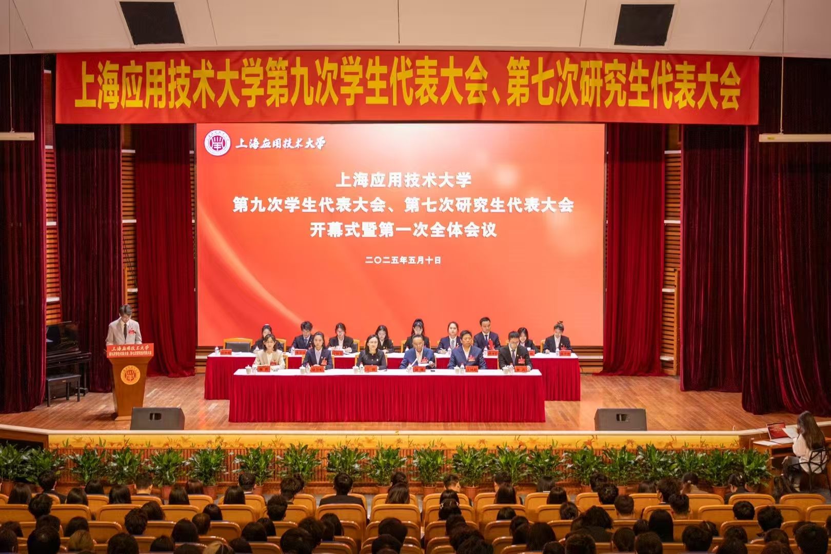 5月10日,上海应用技术大学第九次学生代表大会、第七次研究生代表大会在奉贤校区学生活动中心多功能厅召开。