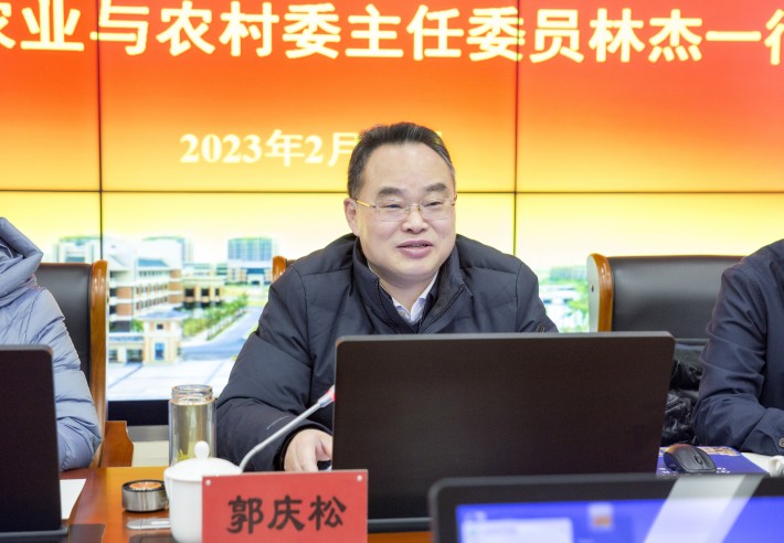 郭庆松对林杰一行表示热烈欢迎,并介绍了学校发展历程,学校的办学特色、学科布局、人才培养等成效,以及建设具有国际影响力的高水平应用创新型大学的思路与举措。他表示,学校致力于推进校地合作、服务地方经济社会发展,希望在服务乡村振兴战略上进一步加大合作力度。