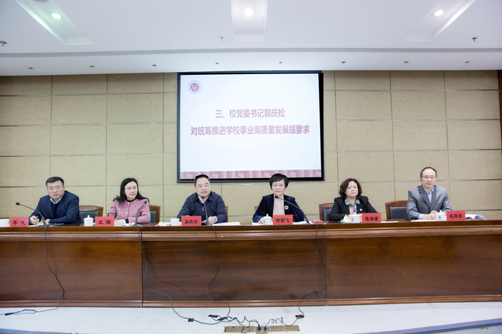 郭庆松强调,要坚持系统观念,用习近平新时代中国特色社会主义思想的世界观和方法论指导工作。学校正处于奋力开启高质量发展新征程的关键落实期,各项工作推进牵一发而动全身,必须把系统观念贯穿于各方面各阶段,做到前瞻性思考、全局性谋划、整体性推进。要坚持党建引领,推动党的二十大精神在学校事业发展各个领域各个方面落地生根。以全党主题教育为契机,推动基层党建与事业发展相融合,持续深入推进全面从严治党,着力构筑“大思政课”发展的“新优势”,维护好校园安全稳定。要坚持真抓实干,以新气象新担当新作为推动学校事业取得新突破。构建系统科学的干部培养选拔机制,提高年轻干部抓重大任务落实的能力,完善年轻干部基层锻炼制度,形成优秀年轻干部不断涌现的生动局面。