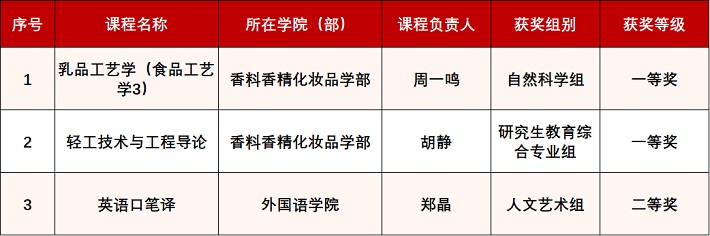 近日,市教委公布首届上海市课程思政教学设计展示活动获奖名单,我校香料香精化妆品学部《乳品工艺学(食品工艺学3)》荣获自然科学组一等奖,《轻工技术与工程导论》荣获研究生教育综合专业组一等奖,外国语学院《英语口笔译》荣获人文艺术组二等奖。
