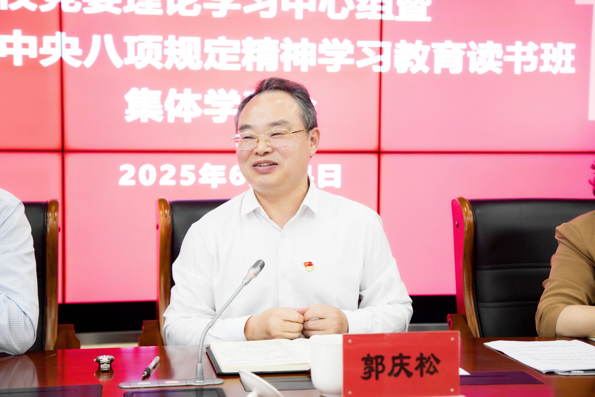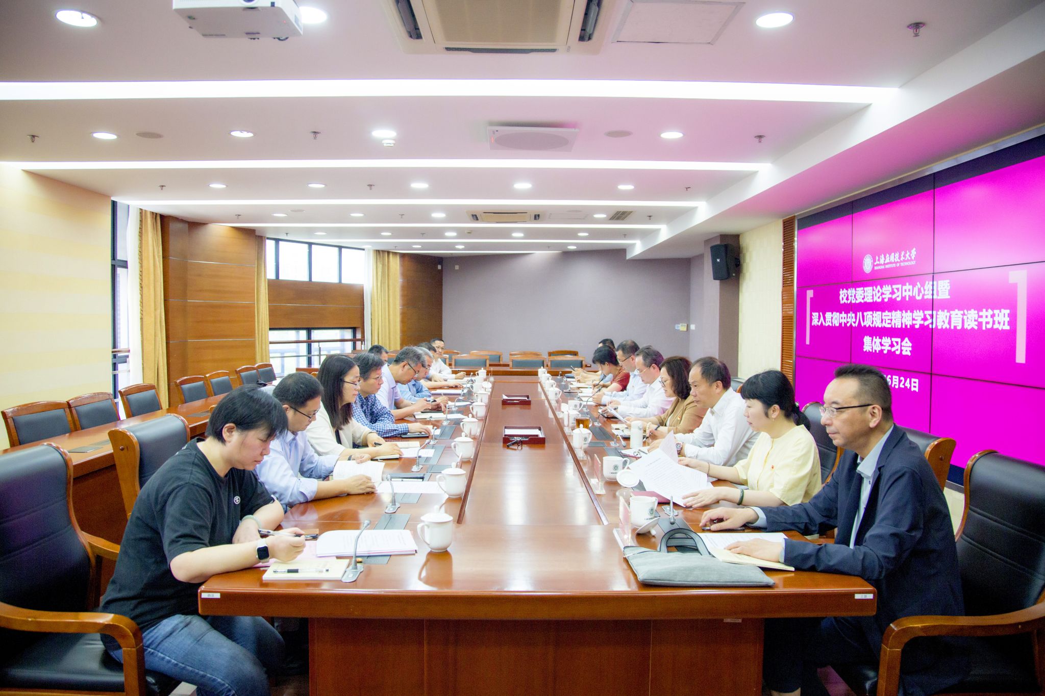 根据学校党委关于深入贯彻中央八项规定精神学习教育工作部署和党委理论学习中心组学习安排,6月24日,学校党委举行党委理论学习中心组暨深入贯彻中央八项规定精神学习教育读书班集体学习会,集中学习《关于集中整治违规吃喝的通知》精神,并围绕《习近平关于加强党的作风建设论述摘编》(八)(九)开展专题交流。校党委书记、党委理论学习中心组组长郭庆松主持学习会。