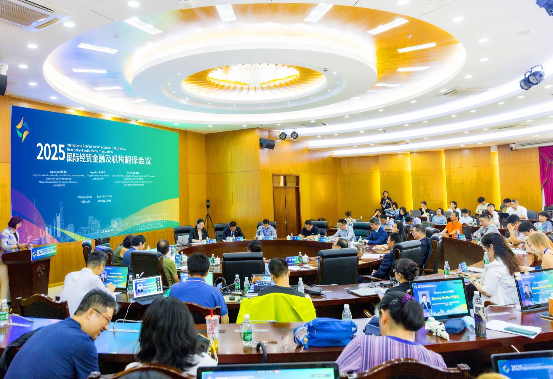 6月23日至24日,继2023年在西班牙阿利坎特举办之后,2025年国际经贸金融及机构翻译会议在上海应用技术大学召开。上海应用技术大学校长汪小帆,校党委副书记、副校长王瑛,副校长毛祥东出席会议。会议吸引众多国内外专家学者齐聚一堂,共同探讨AI智能时代对全球化翻译的变革与发展新图景。会议由上海应用技术大学外国语学院和上海文策国家语言服务出口基地共同承办,外国语学院院长潘智丹主持开幕式。