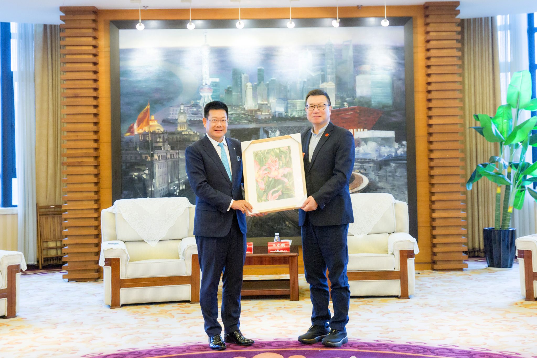 6月23日,澳门中西创新学院校董、校长仲伟合一行来访我校。校长汪小帆热情接待来宾,双方进行座谈交流。校党委副书记、副校长王瑛,校党政办公室、国际交流处、外国语学院相关负责人参加座谈。