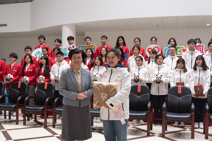 王瑛为服务期生日志愿者赠送礼物,对同学们的辛勤服务表示感谢。