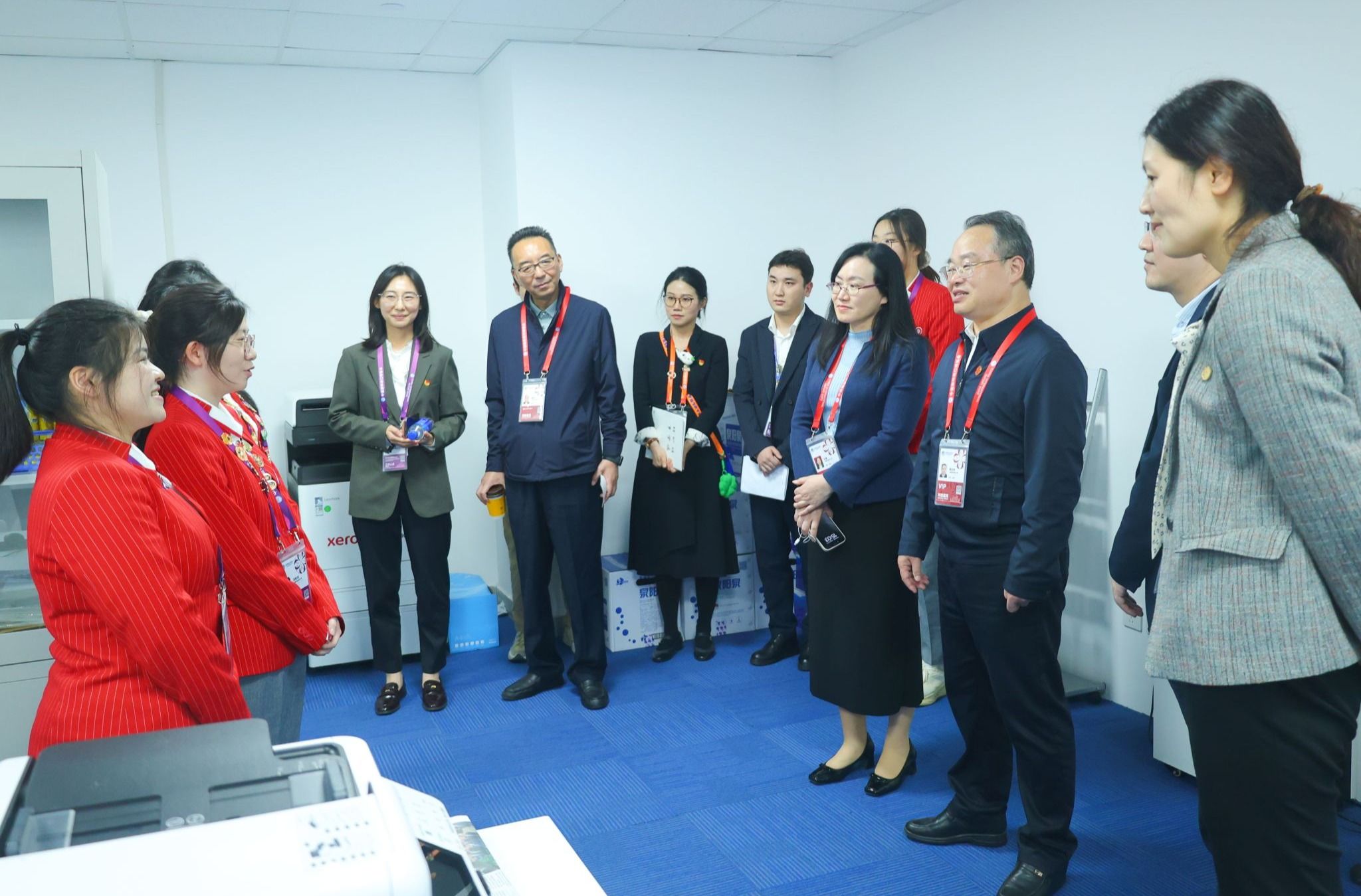 11月6日,校党委书记郭庆松,党委副书记、副校长王瑛专程前往国家会展中心,亲切慰问服务第八届进博会的上应“小叶子”,并与团市委副书记王江、团市委挂职副书记唐志宇在“小叶子之家”进行深入交流。党委学生工作部部长、人民武装部部长袁翔,校团委副书记魏晋等有关同志陪同参加。